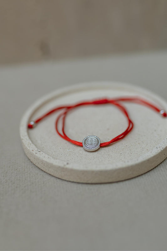 Pulseira Seda Vermelho São Bento Cravejado Prata 925 Ródio Branco