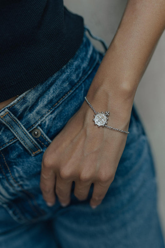 Pulseira Elos Português e Medalha de São Bento Ródio Branco