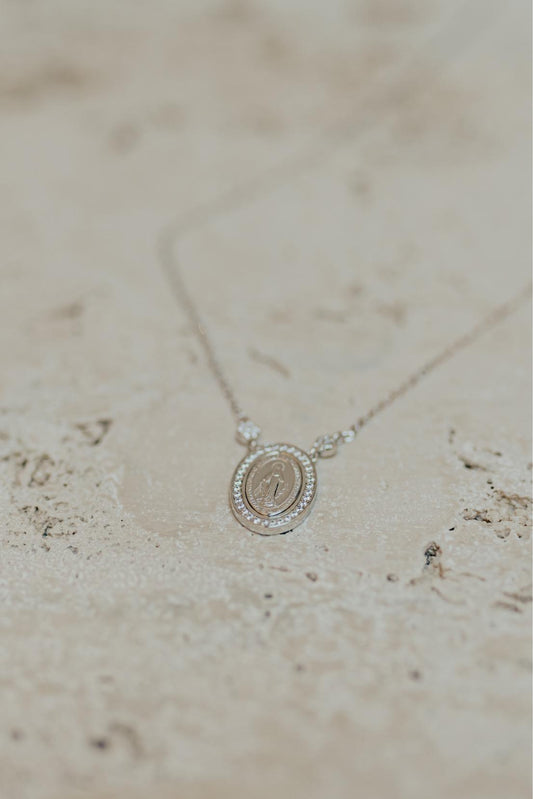 Colar Mini Nossa Senhora das Graças Prata 925 Ródio Branco