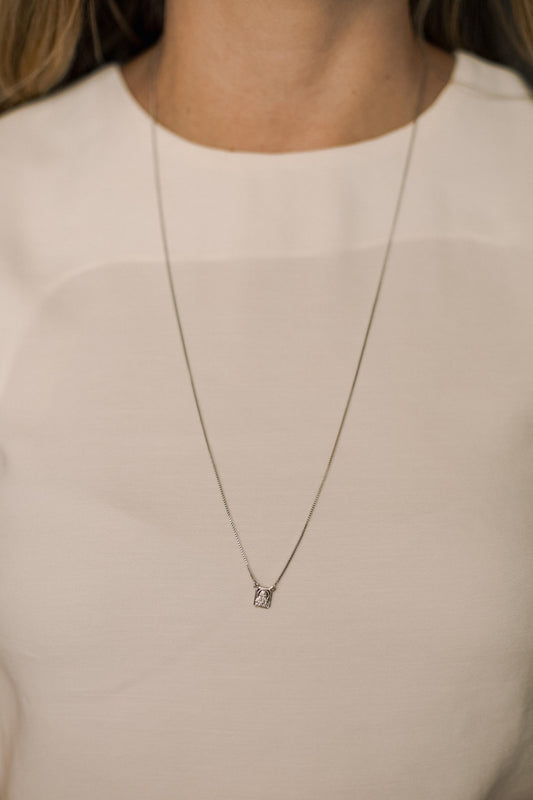 Colar Mini Nossa Senhora das Graças Moissanite Prata 925 Ródio Branco