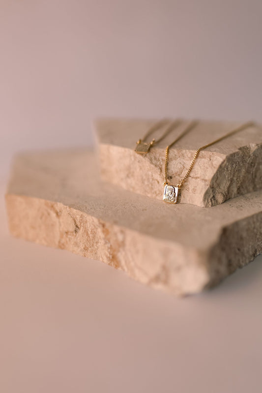Colar Mini Nossa Senhora das Graças Flores Moissanite Prata 925 Dourado
