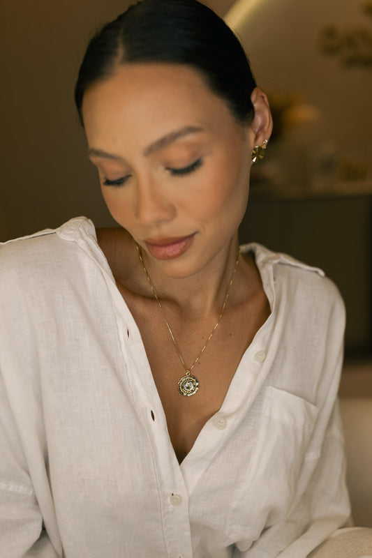 Colar Medalha Madrepérola Nossa Senhora Aparecida Dourado