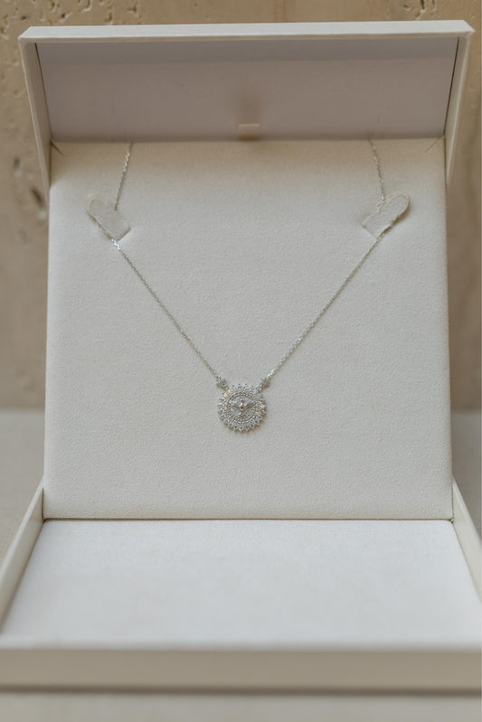 Colar Medalha Cristais Nossa Senhora das Graças Moissanite Prata 925