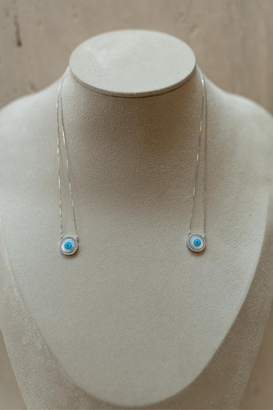 Colar Escapulário Olho Grego Cravejado Prata 925 Ródio Branco
