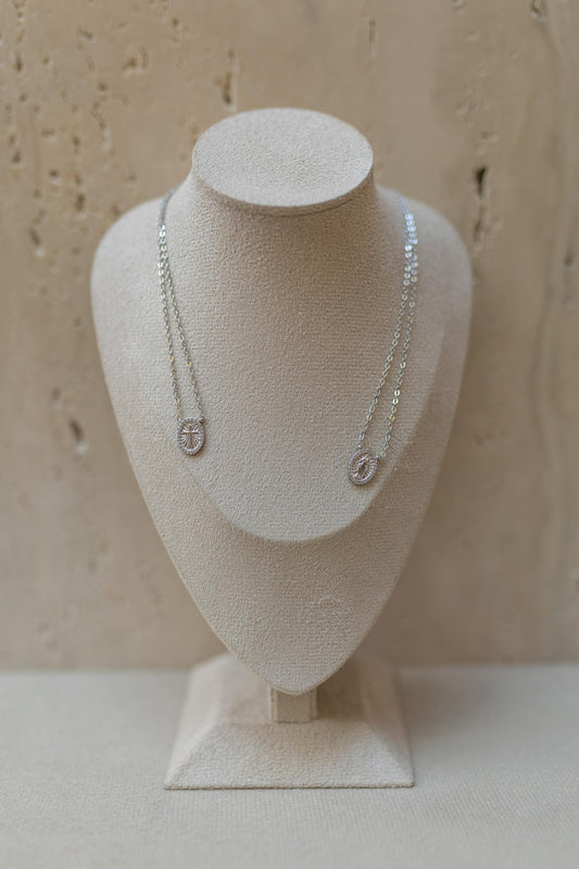 Colar Escapulário Pedras Fusion Ródio Branco