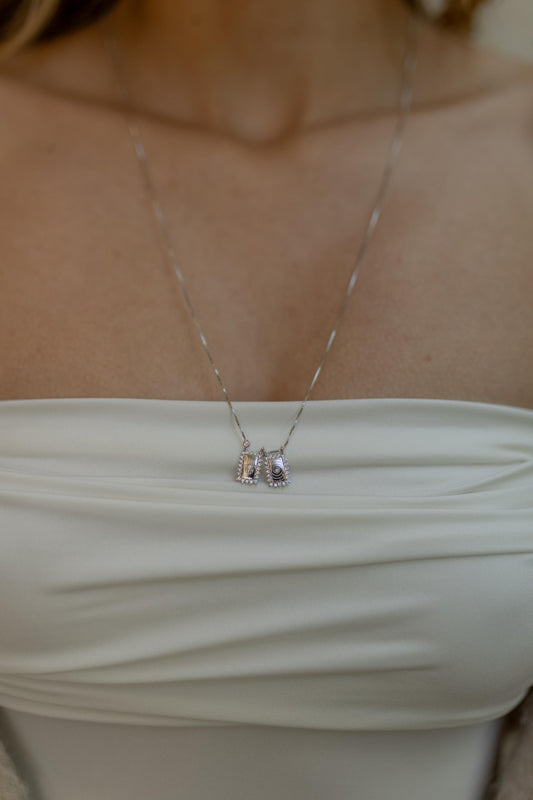 Colar Escapulário Olho Grego e Mão Hamsá Ródio Branco