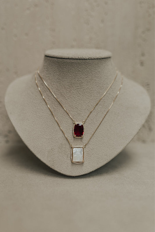 Colar Escapulário Madrepérola Rubi Dourado