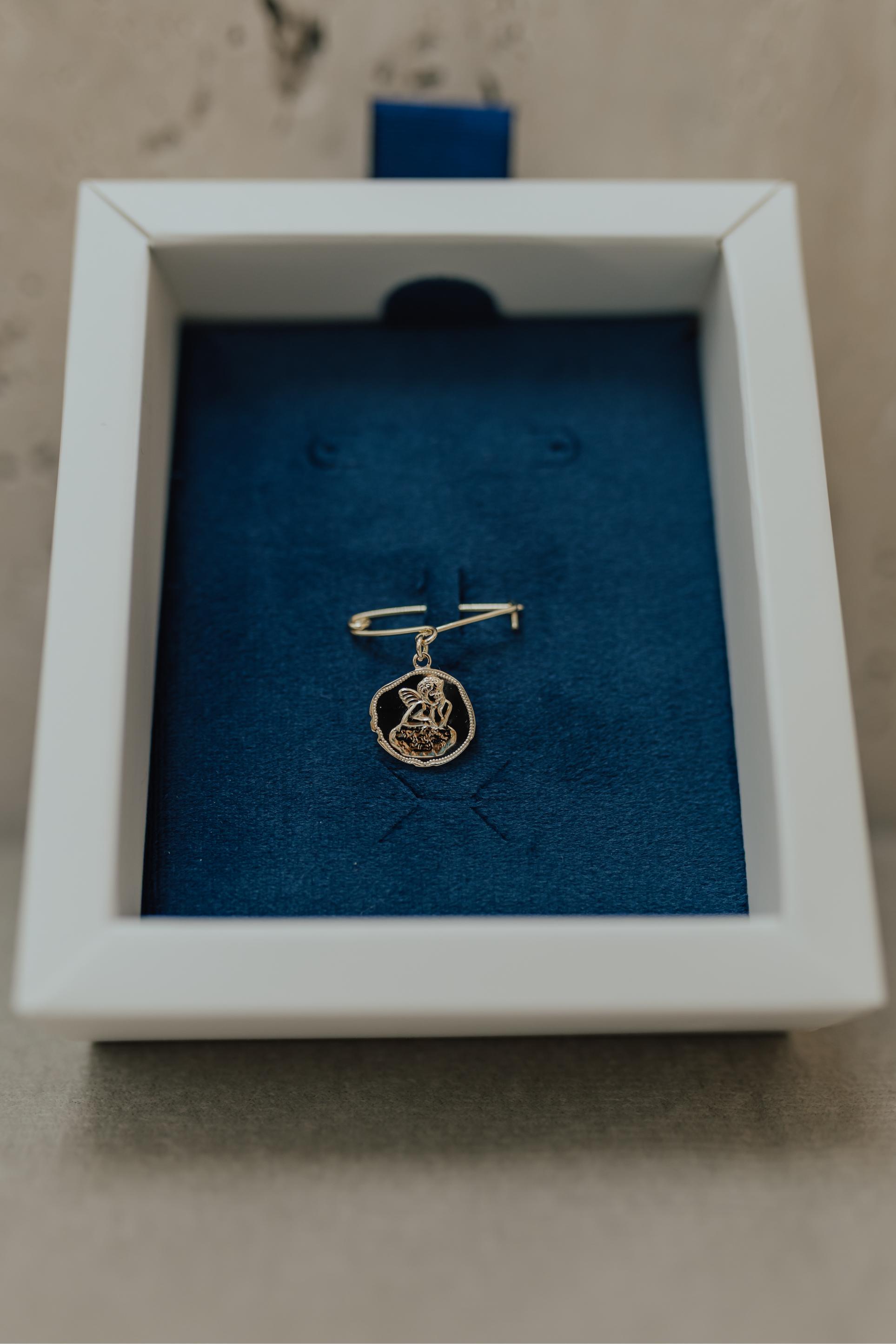 Alfinete com pingente do Anjo da Guarda, perfeito para você presentear no banho de ouro de 18k.