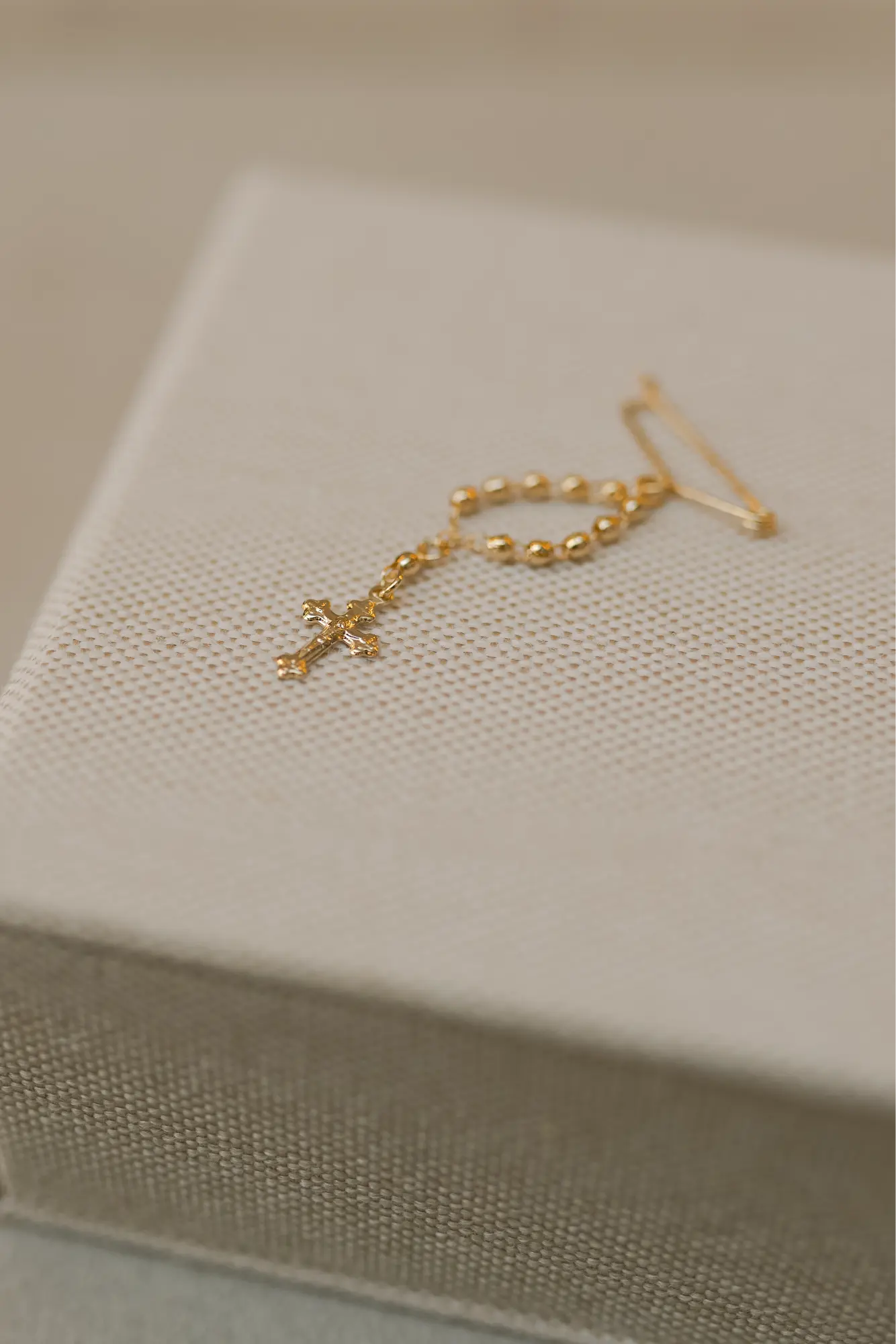 Lindo alfinete com pingente de Terço, perfeito para você presentear no banho de ouro de 18k.