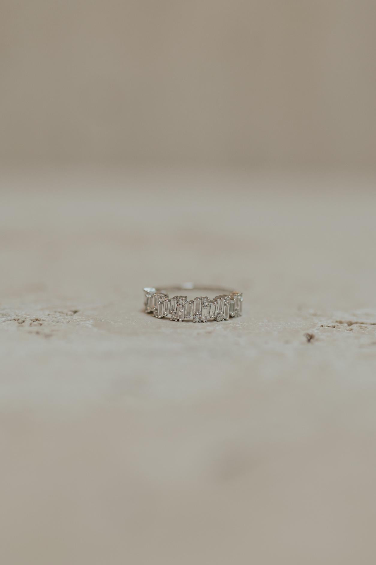 Anel Aparador Baguetes Meia Aliança Prata 925 Ródio Branco