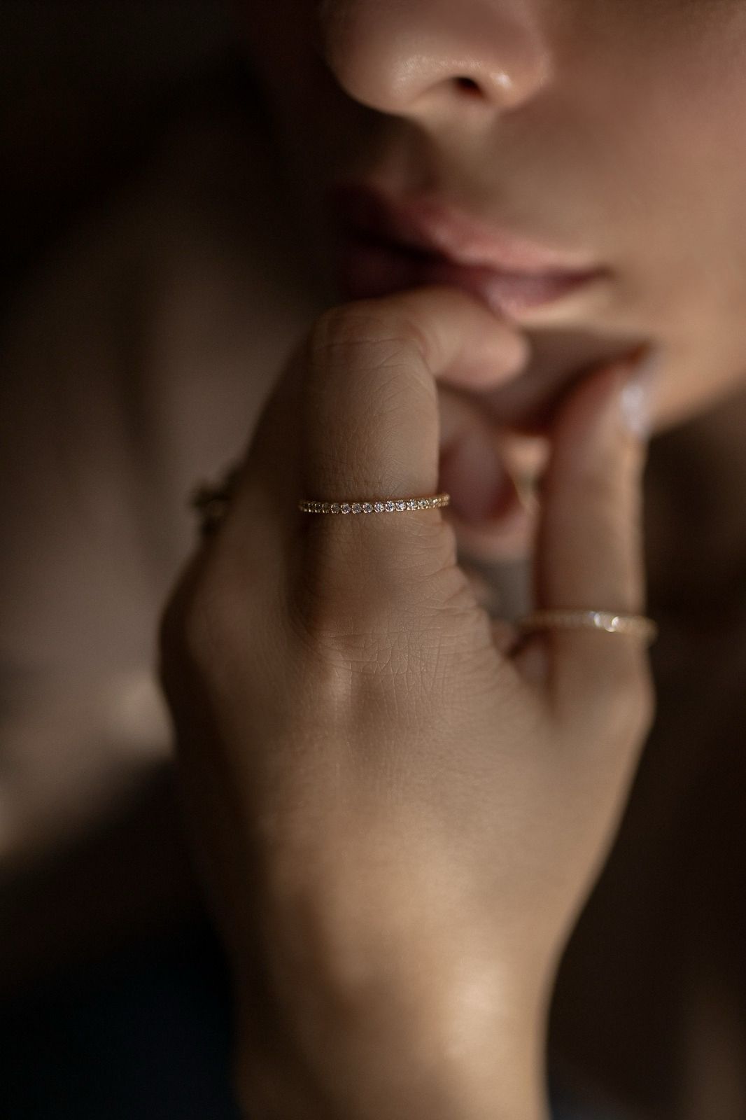 Anel aparador de aliança composto zircônias cravejadas na cor cristal no banho de ouro 18k.