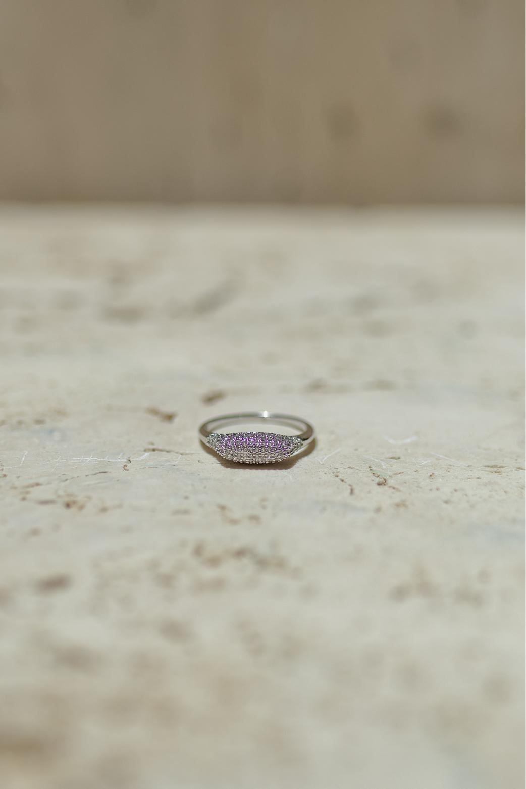 • Anel Frente Oval Cravejada Ródio Branco