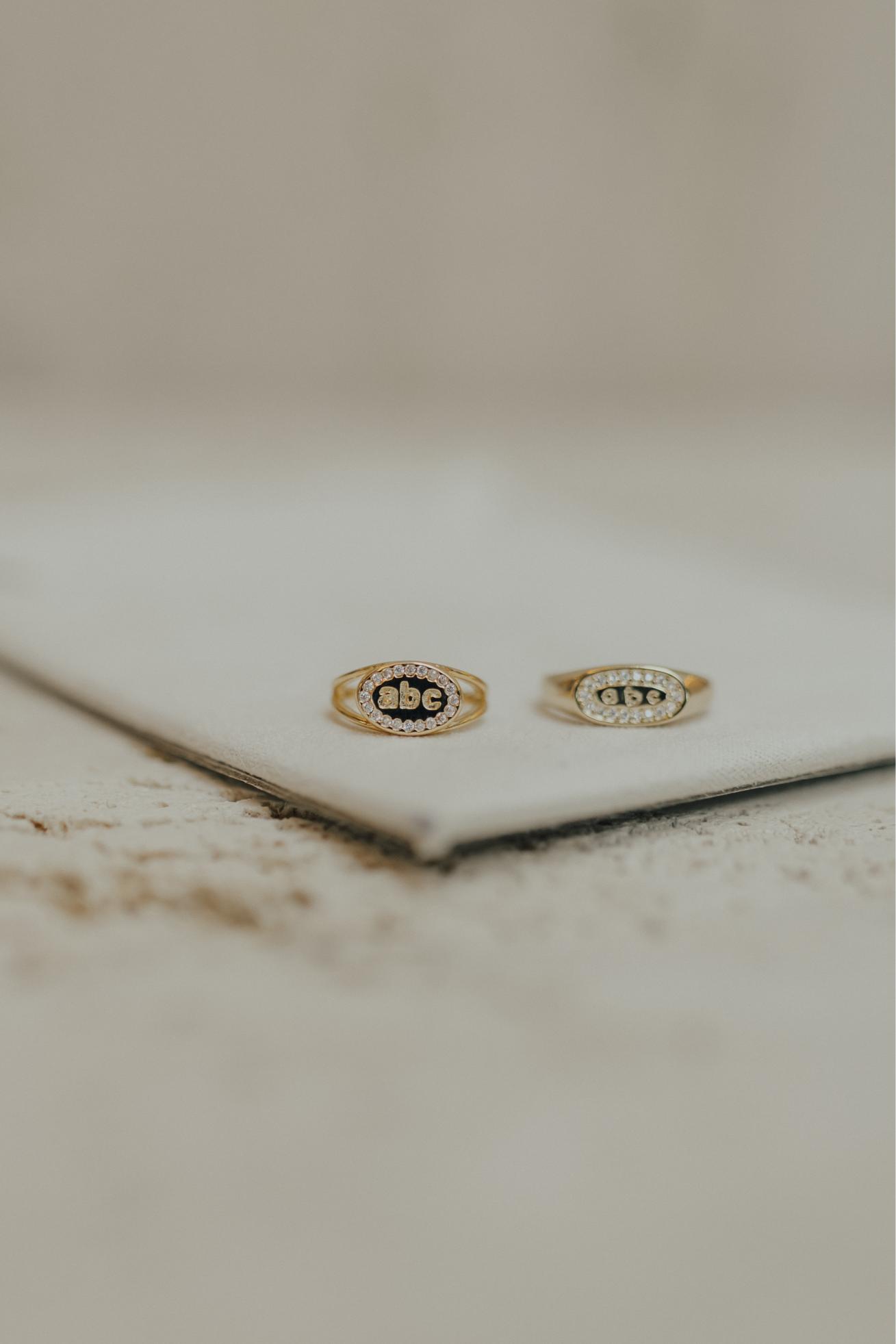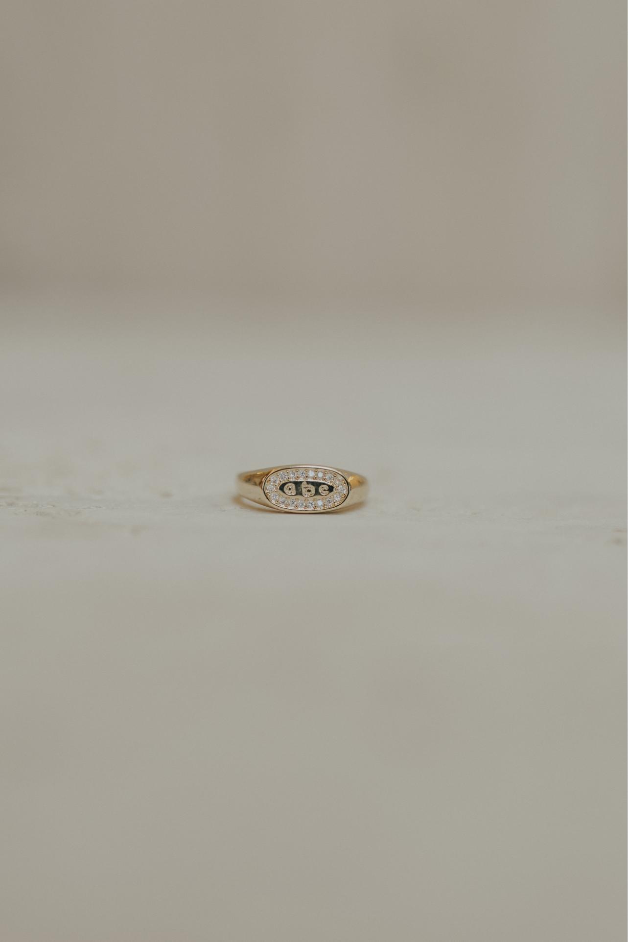 Anel ABC com detalhe de zircônias na cor cristal no banho de ouro 18k.