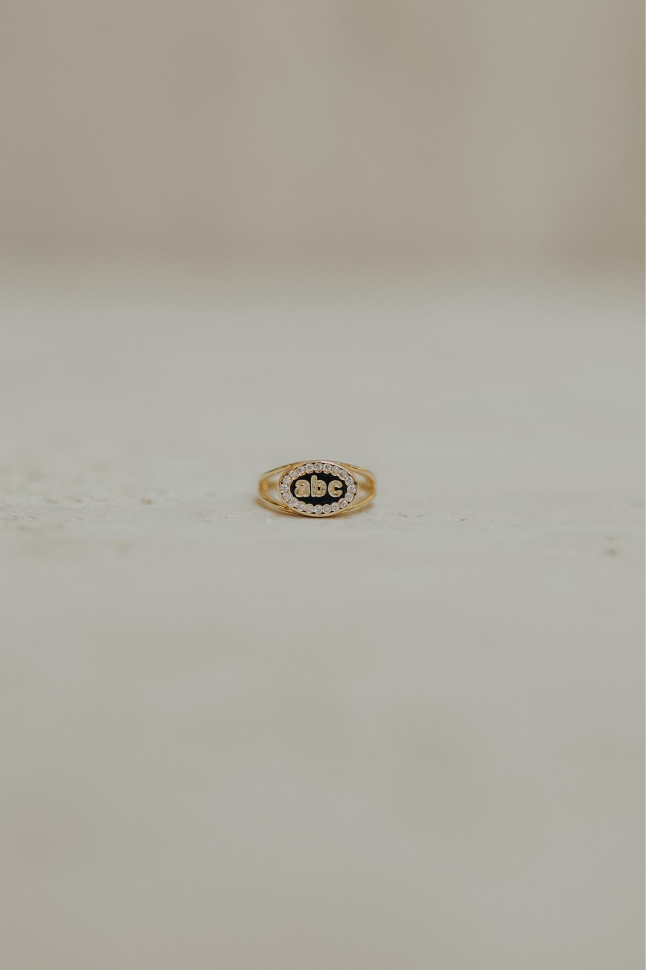 Anel ABC com detalhe de zircônias na cor cristal no banho de ouro 18k.