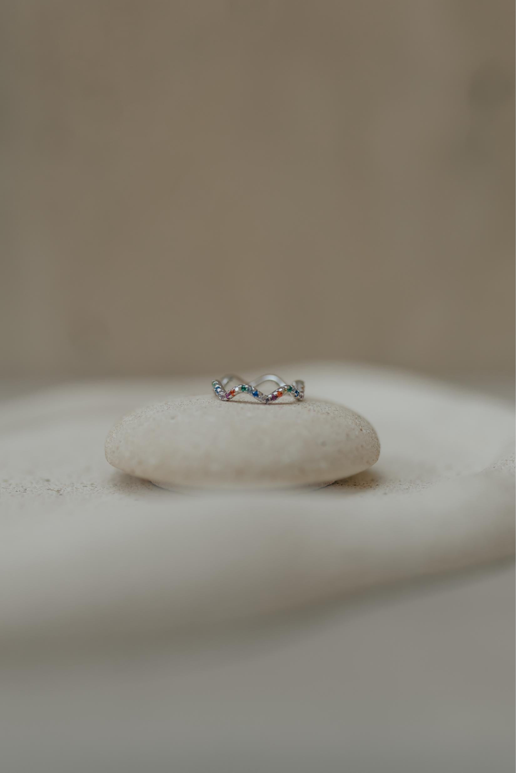 • Anel Ondas Rainbow Ródio Branco