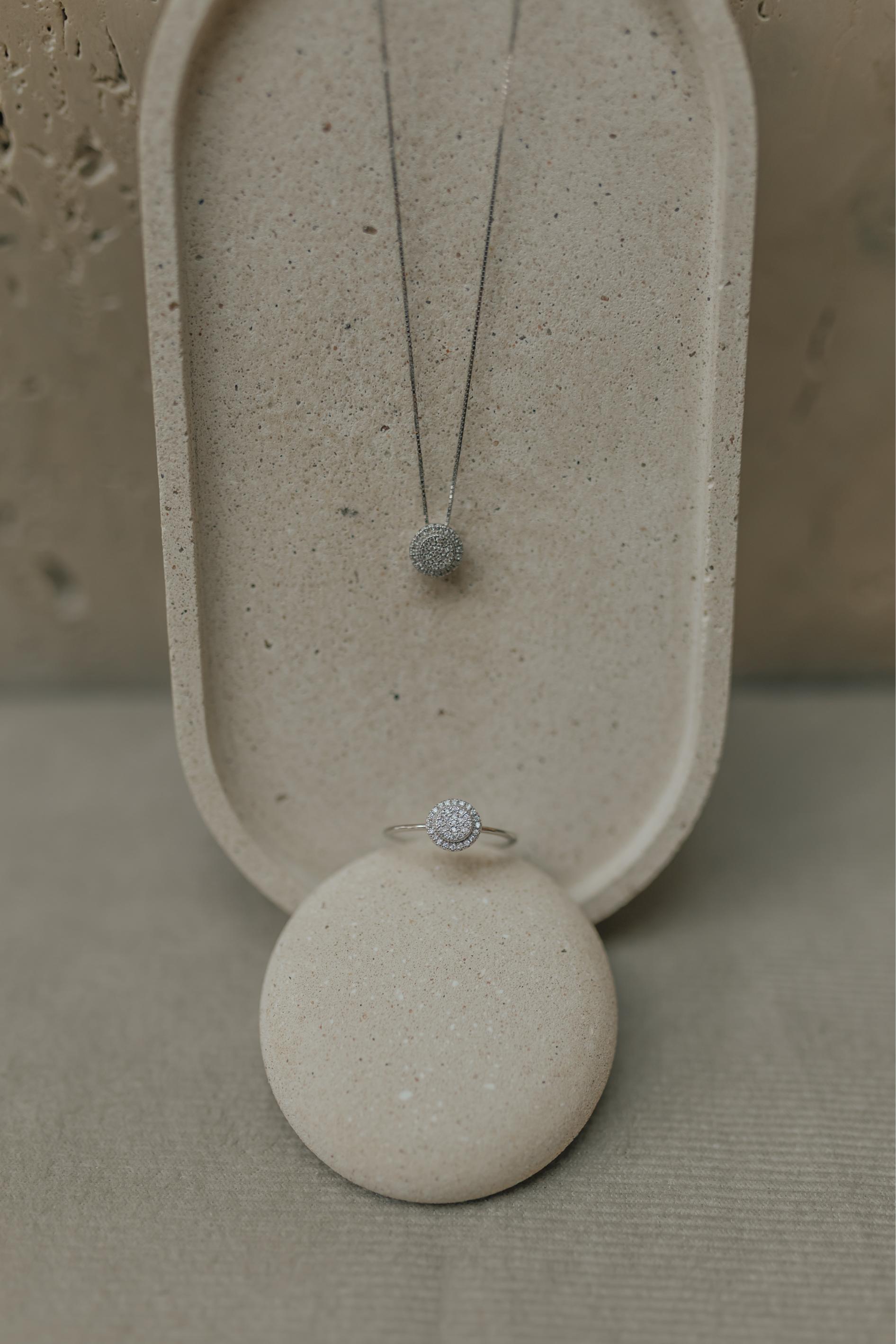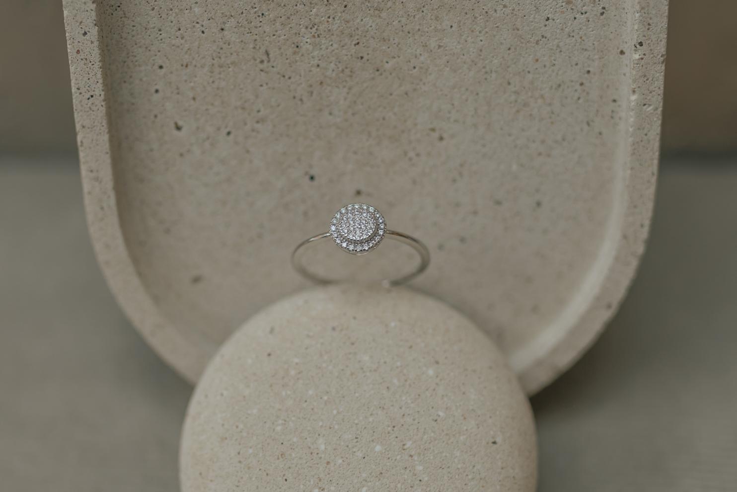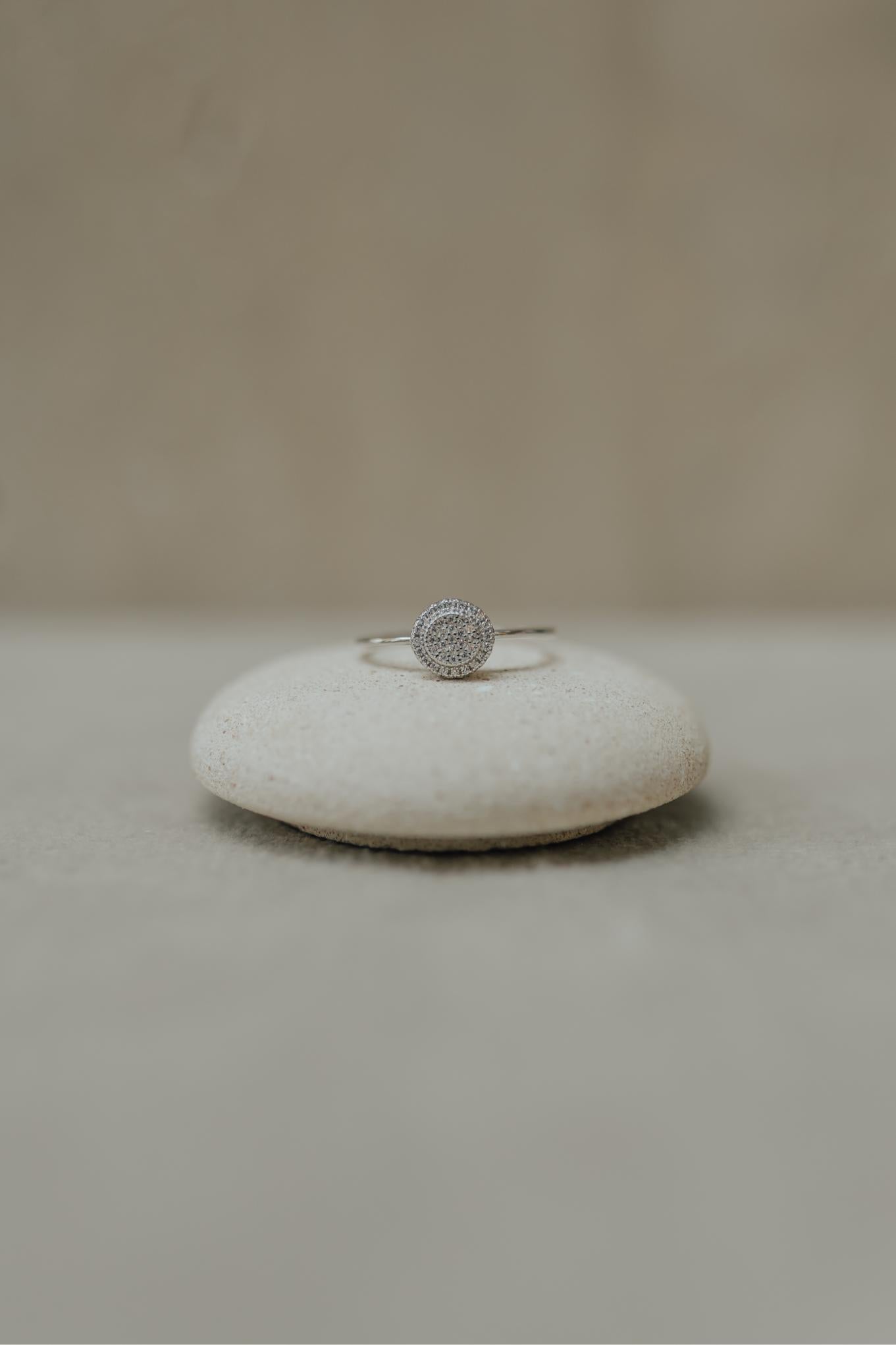 Anel Solitário Redondo Cravejado Prata 925 Ródio Branco