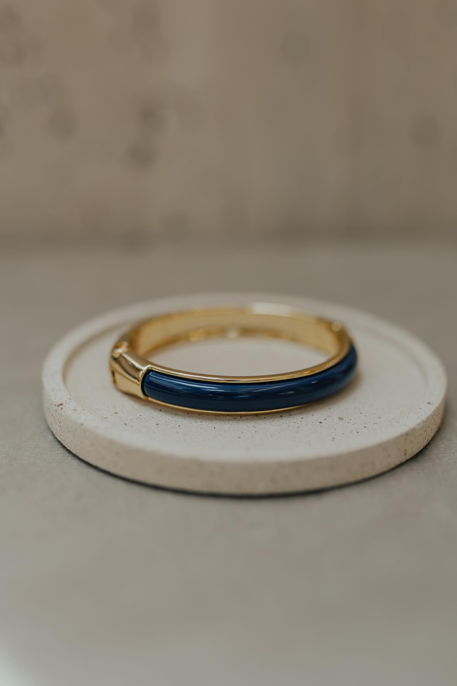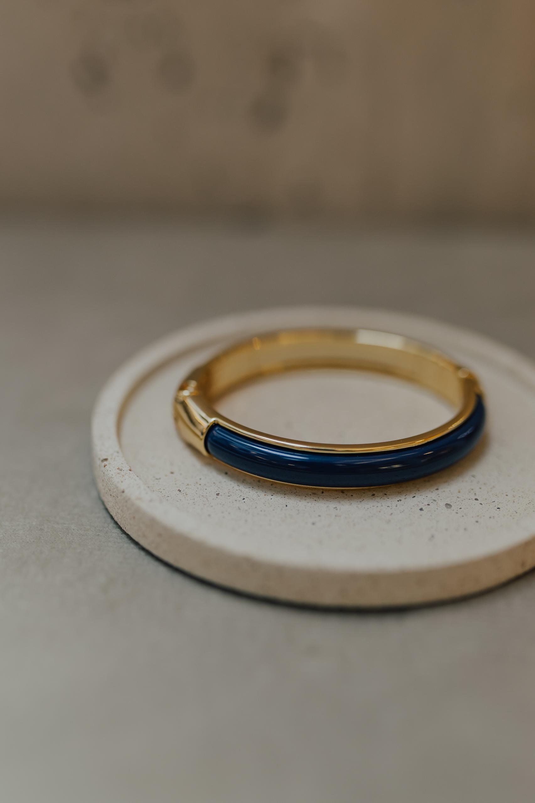 Bracelete com aplique na cor azul marinho no banho de ouro 18k.