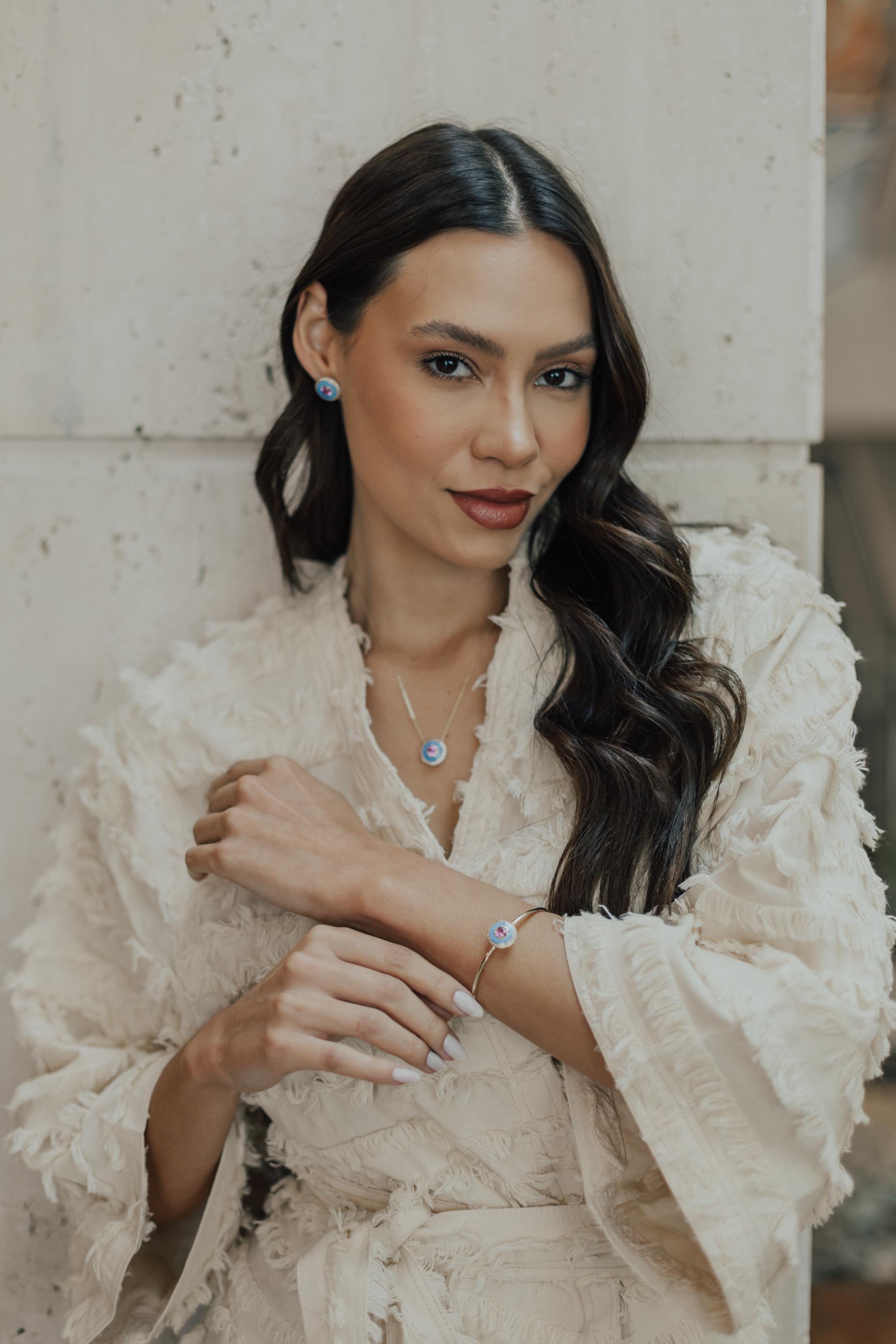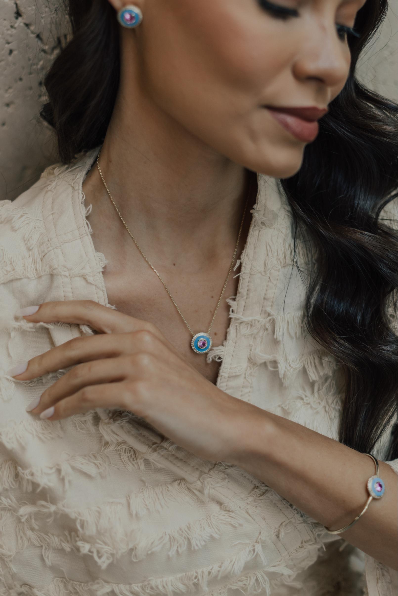 Bracelete com pingente no formato de olho grego esmaltado no banho de ouro 18k.