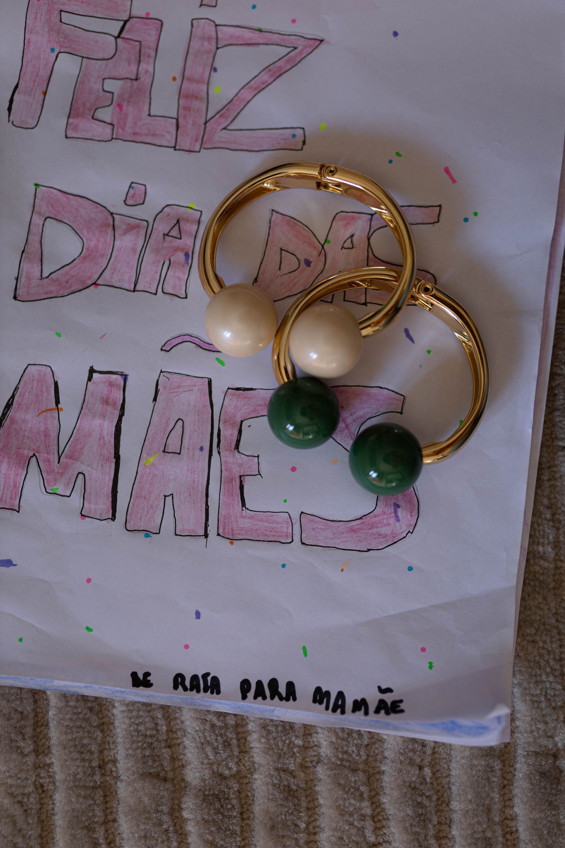 As bolas de resina nas pontas com a cor verde ambição.