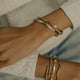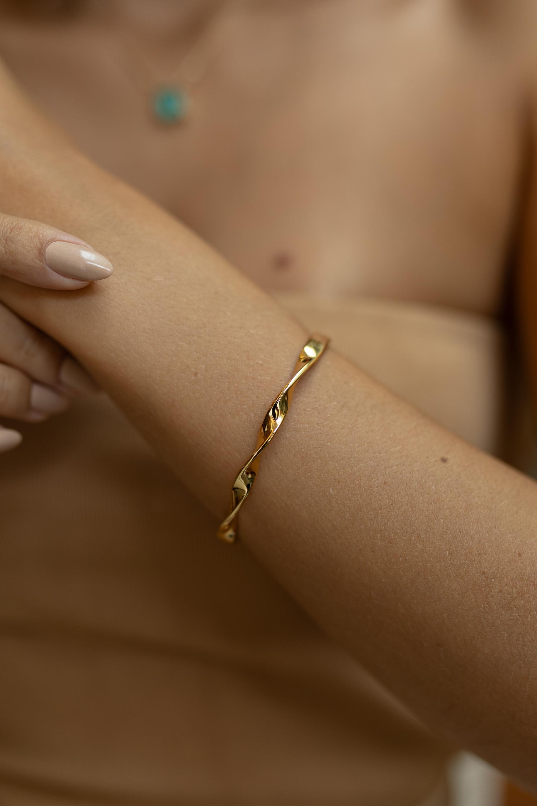 Bracelete torcido delicado e atemporal, perfeito para compor mix de acessórios.
