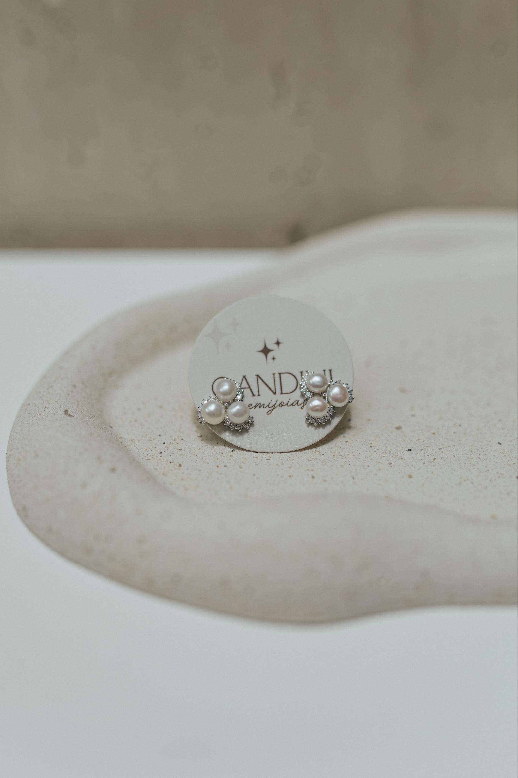 Brinco 3 Pérolas Meia Cravação Prata 925 Ródio Branco