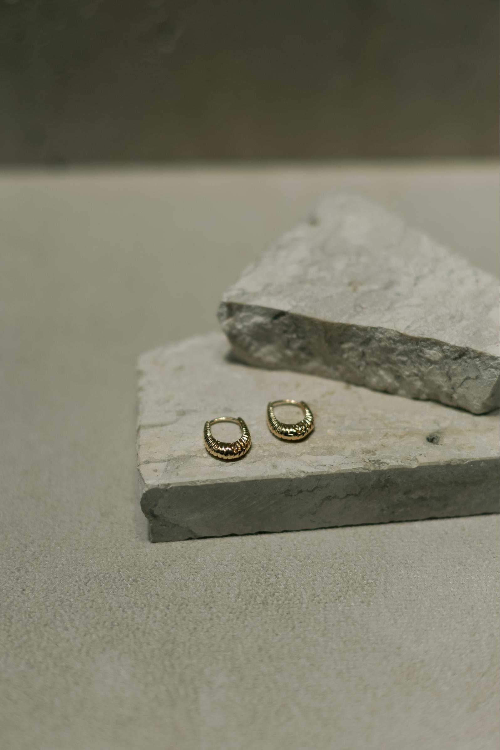 Brinco mini argola com fecho click, modelo croissant e banho de ouro 18k.