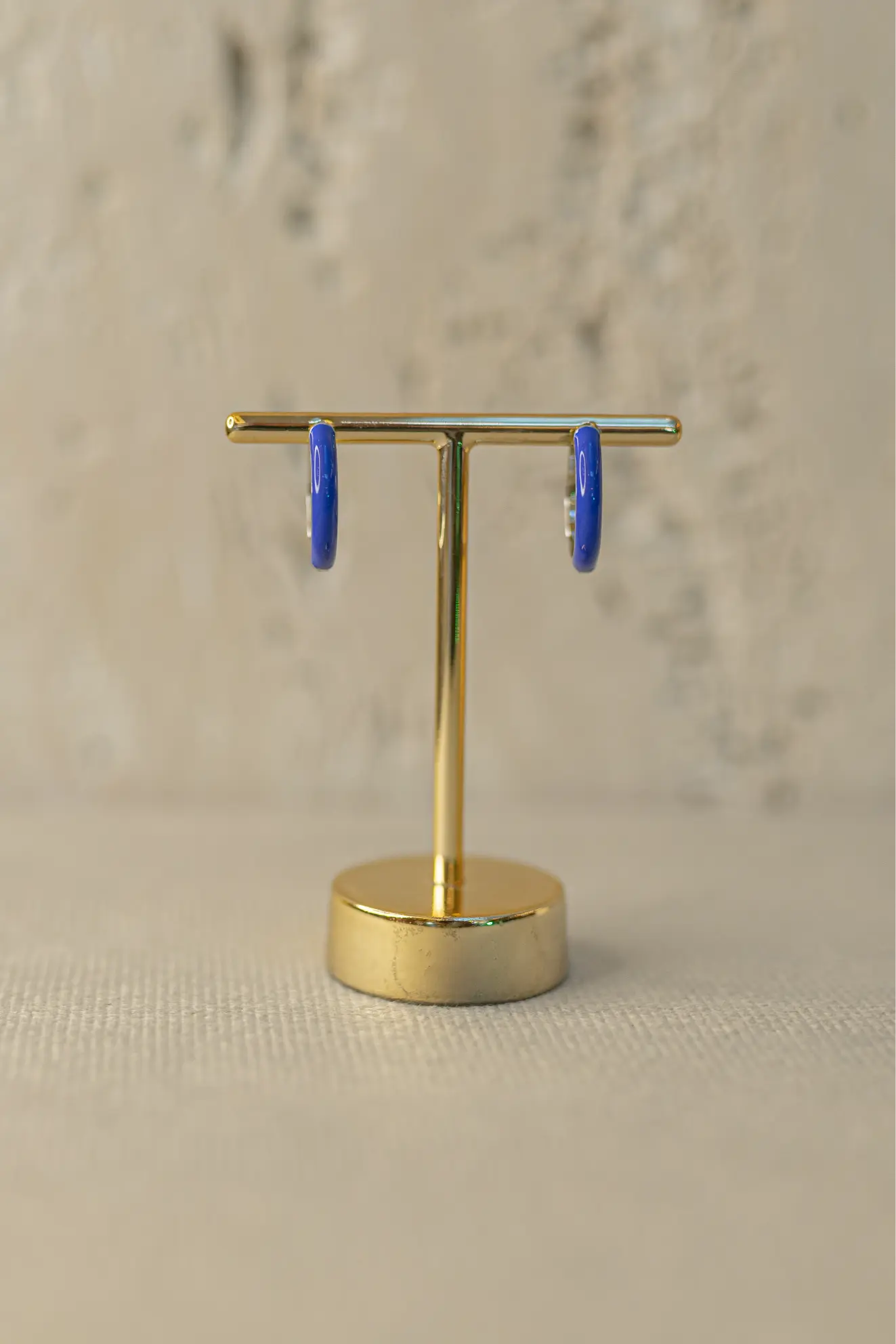 • Brinco Argola Esmaltada Azul Ródio Branco
