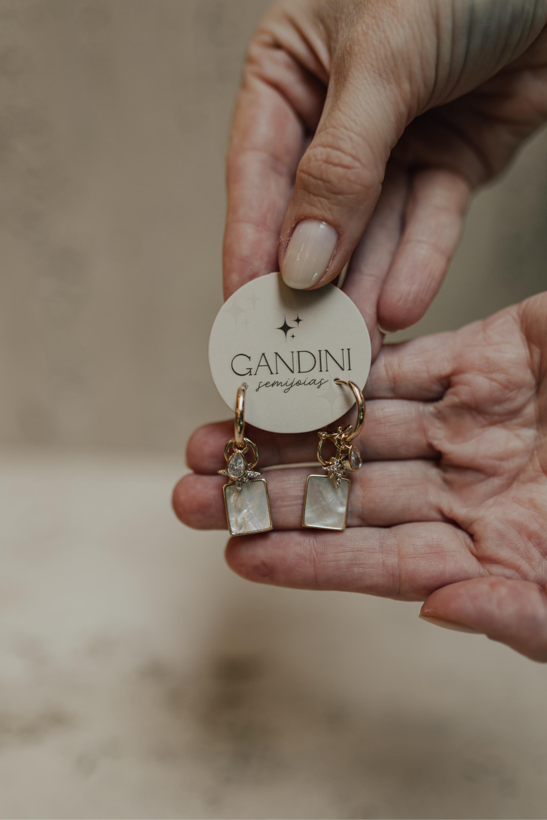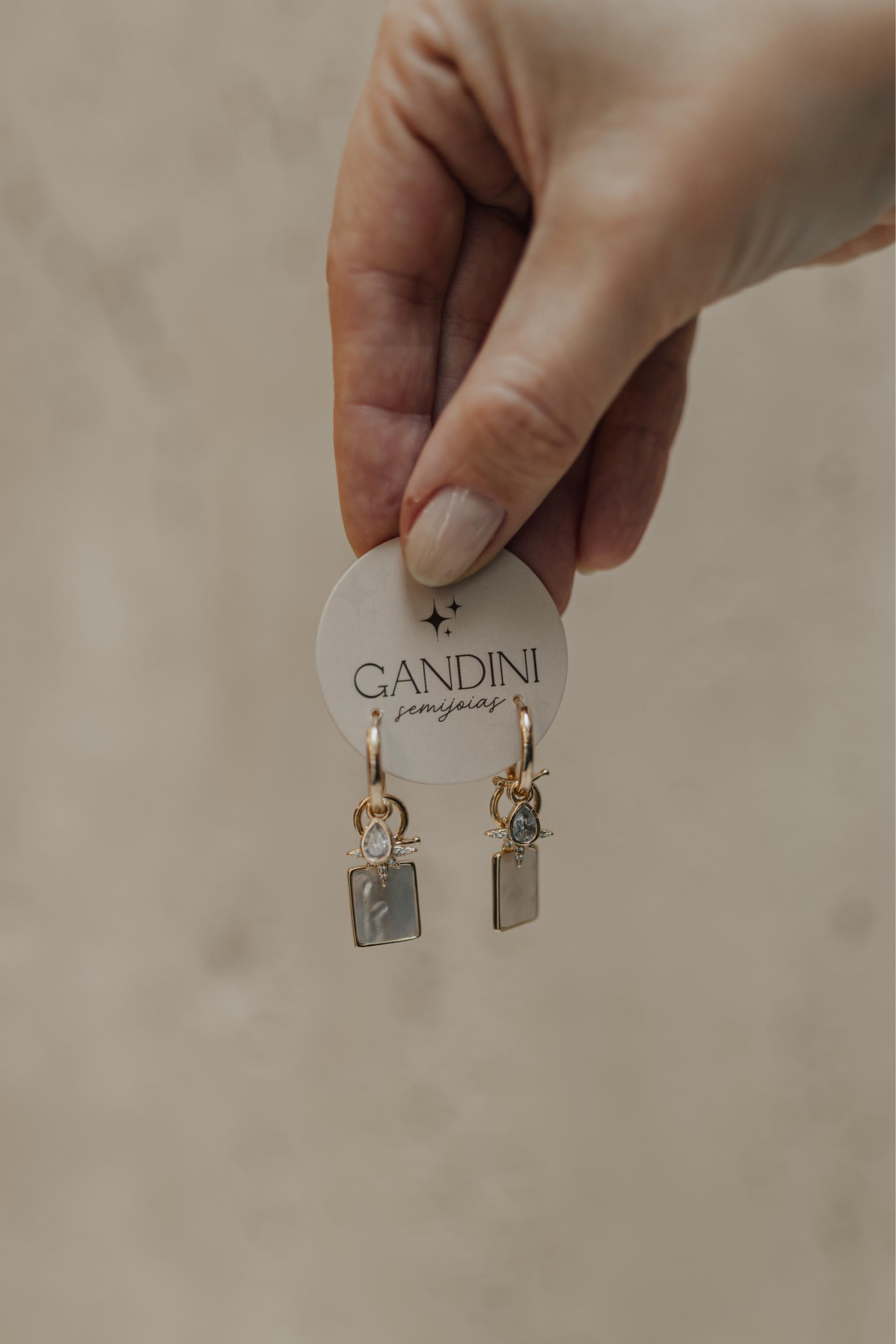 As peças da Gandini são de excelente qualidade, elas recebem banho de Ouro 18k ou Ródio Branco e finalizamos a peça com Verniz especial, garantindo brilho e durabilidade.