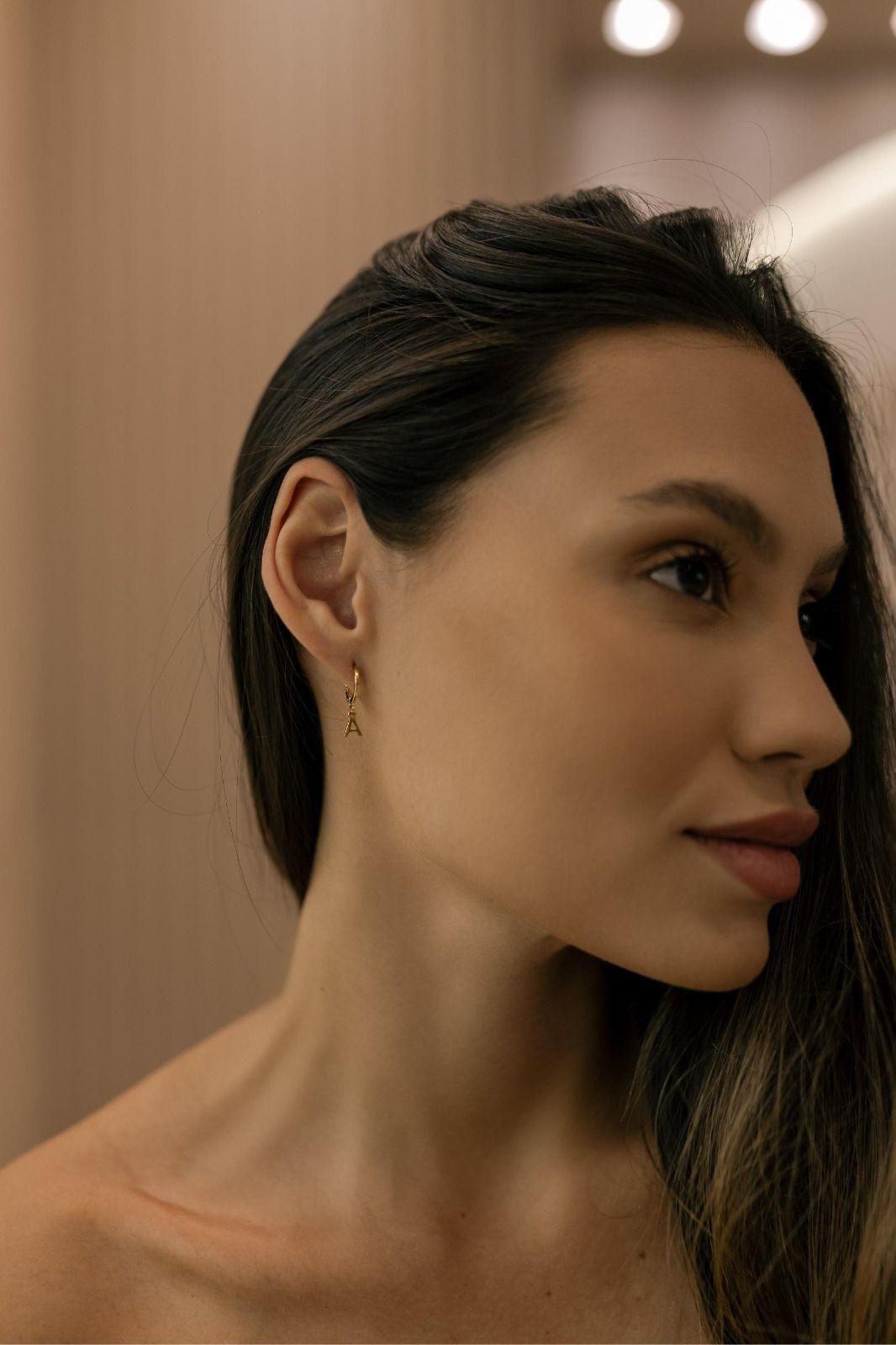 O brinco argolinha Letra/inicial é uma mini argola articulada com pingente de inicial folheada a ouro 18K.