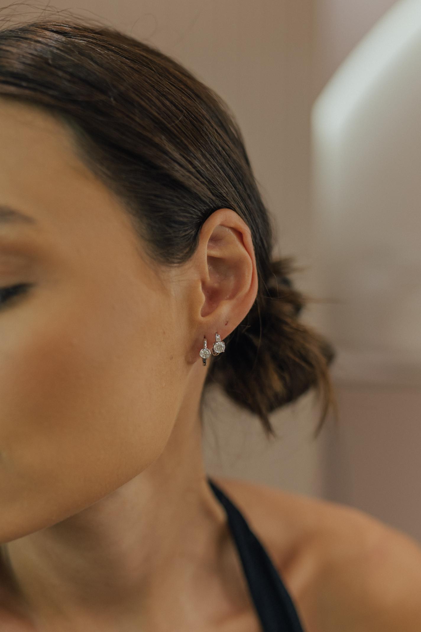 Brinco argola na prata 925 com pedra moissanite de 4mm em cravação 4 garras no banho de ródio branco.