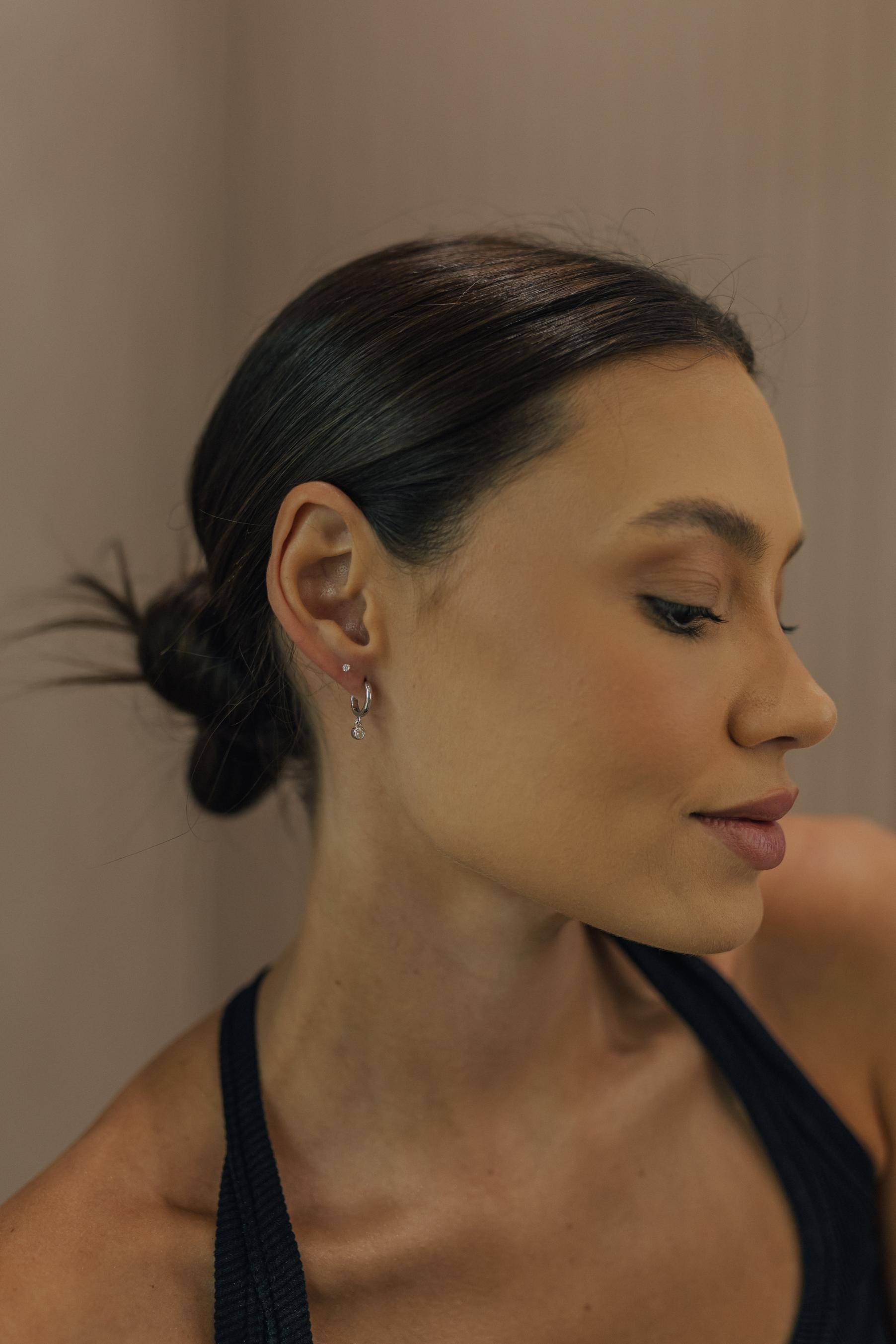 Brinco Argola Prata 925 Ponto de Luz Clássico Moissanite Ródio Branco