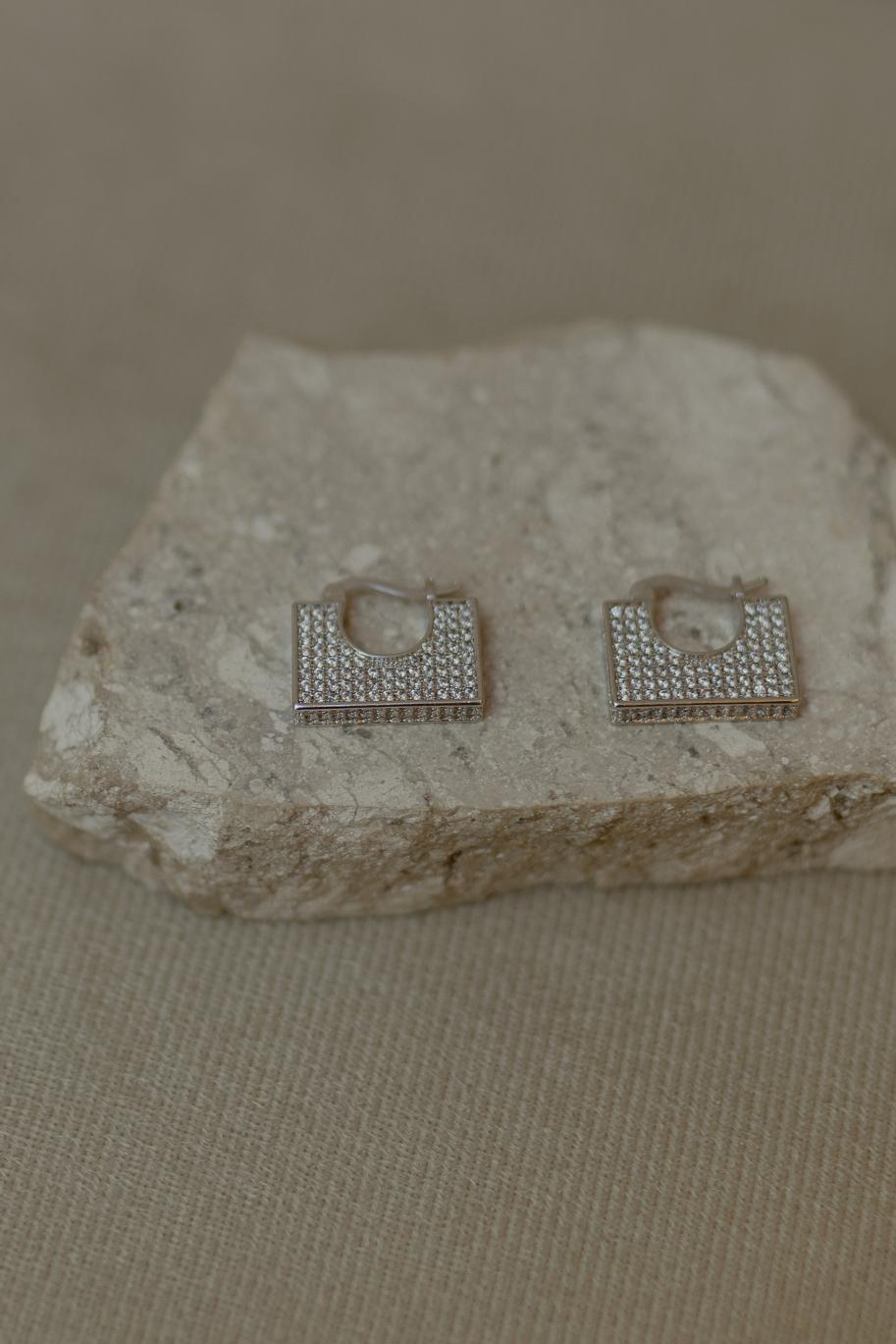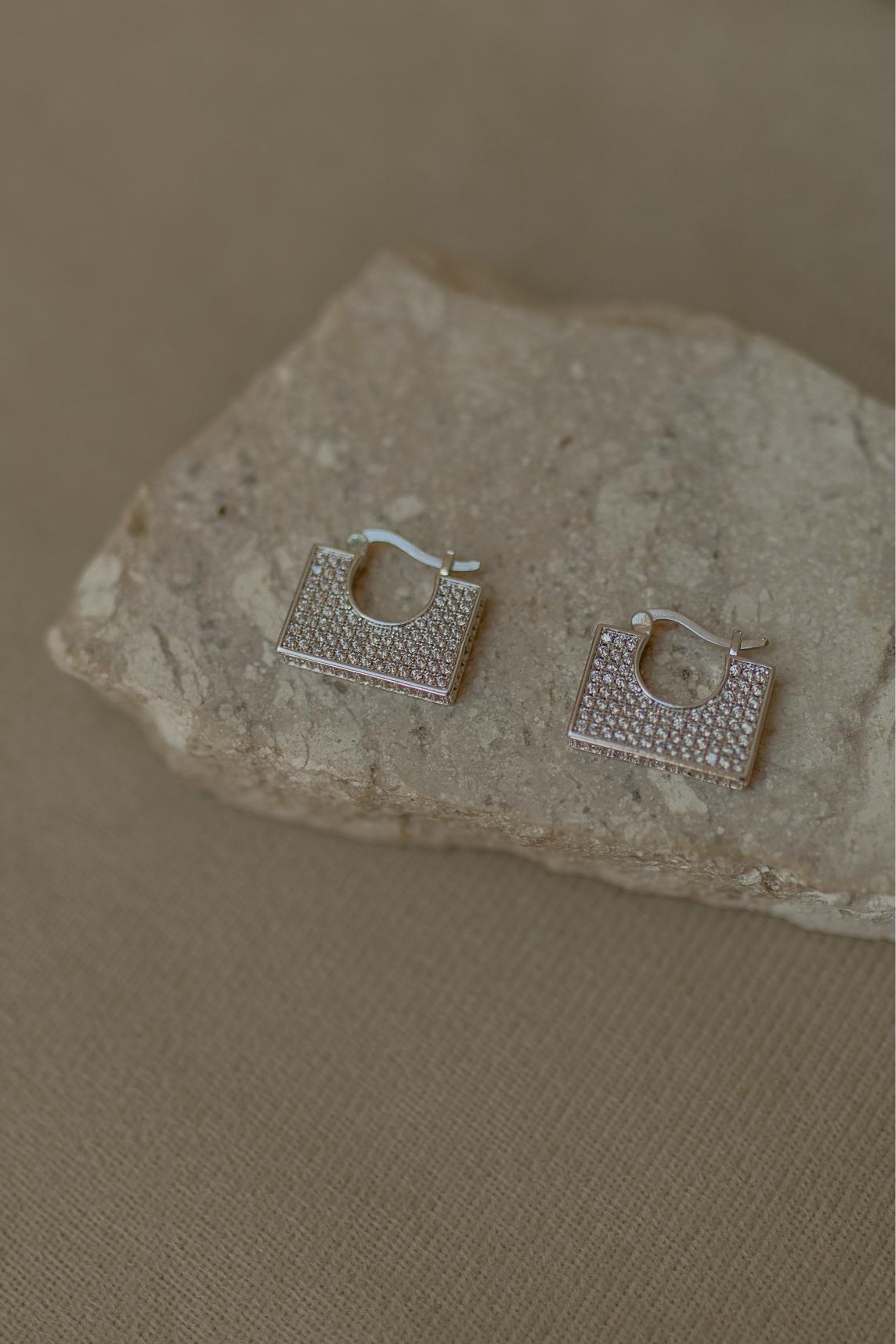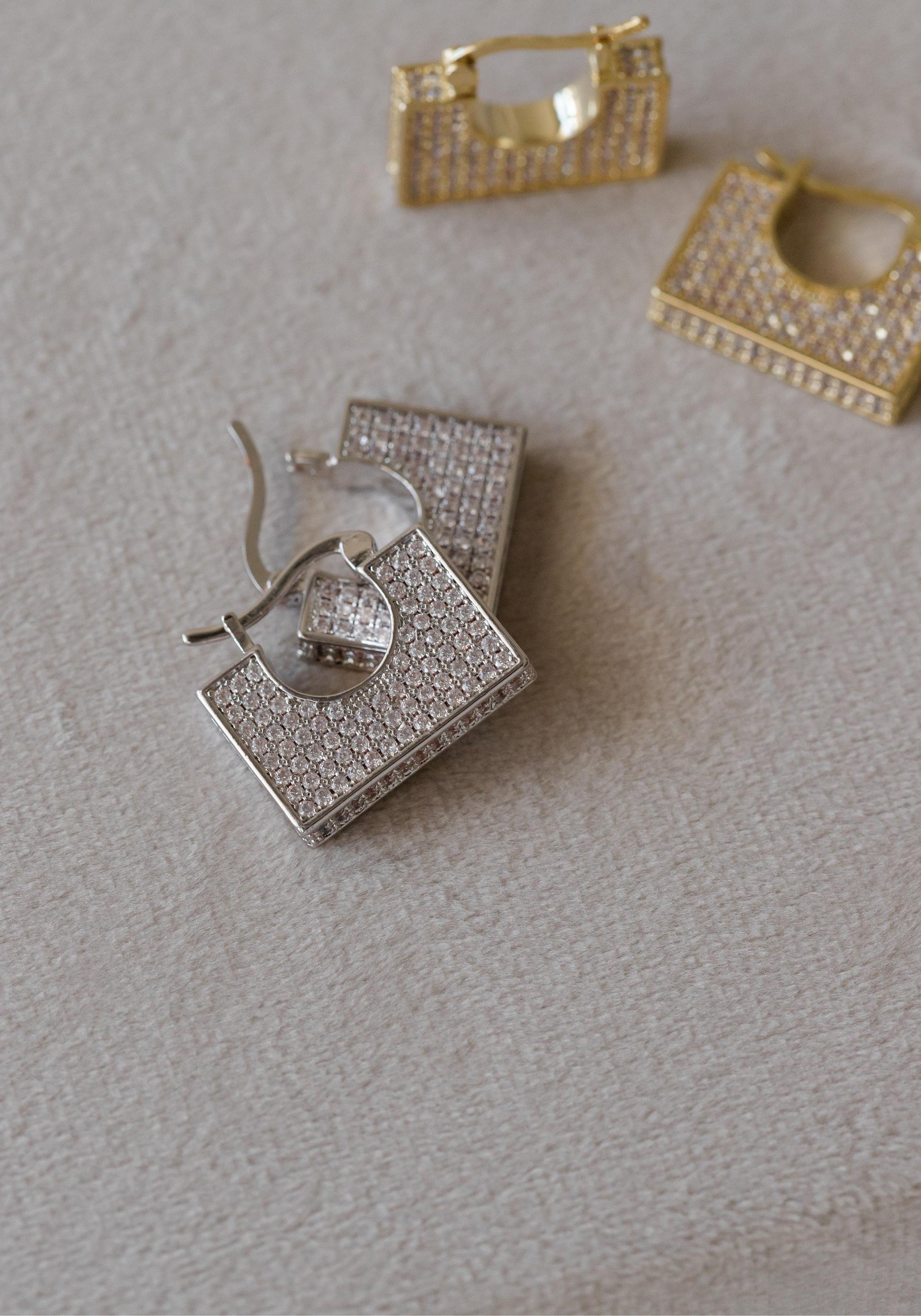 Brinco de argola cravejado com click italiano no banho de ródio branco.