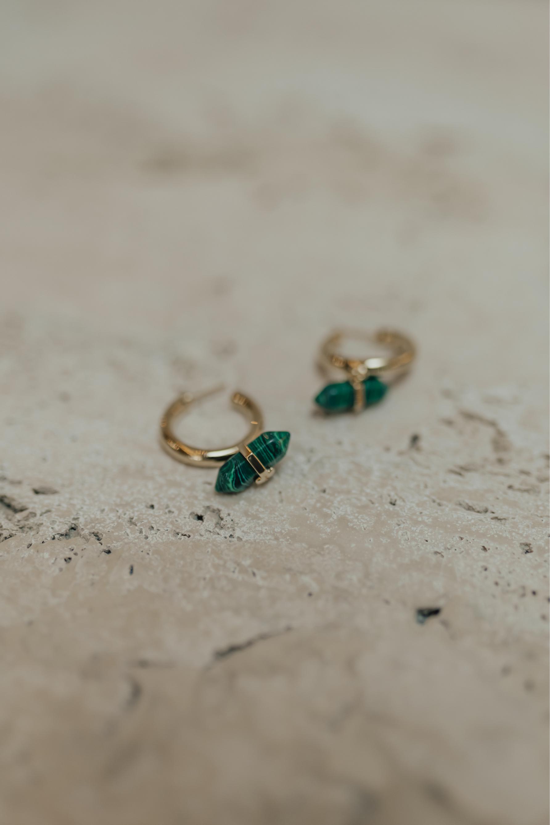 Brinco de argola clássica com pingente de pedra natural ametista.