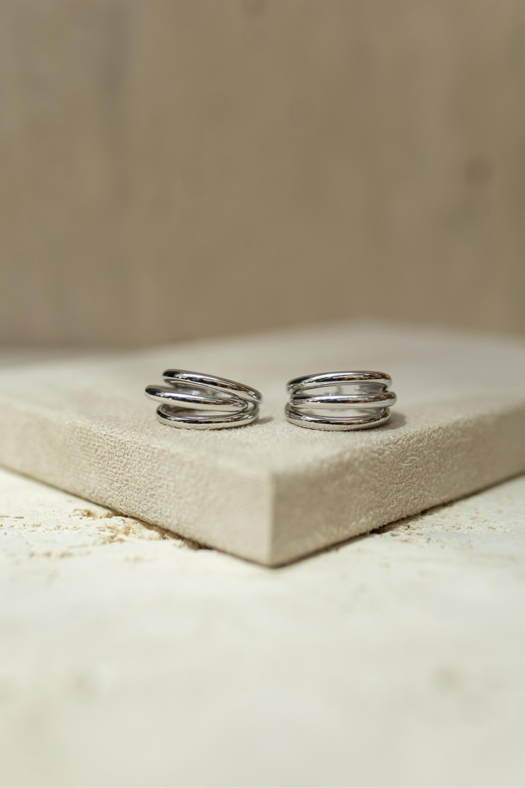 Brinco Argola Tripla Maxi Ródio Branco