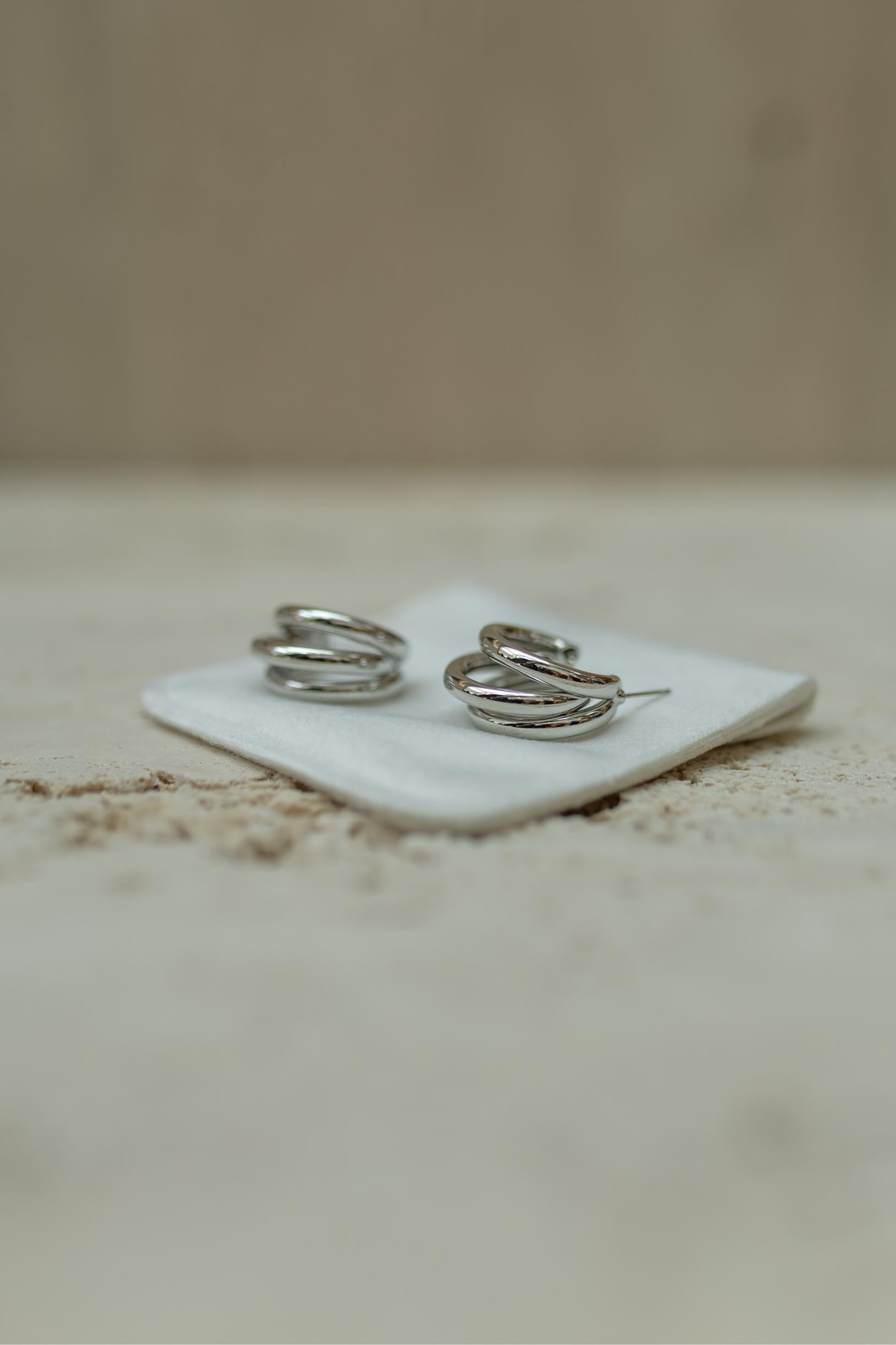 Brinco Argola Tripla Ródio Branco