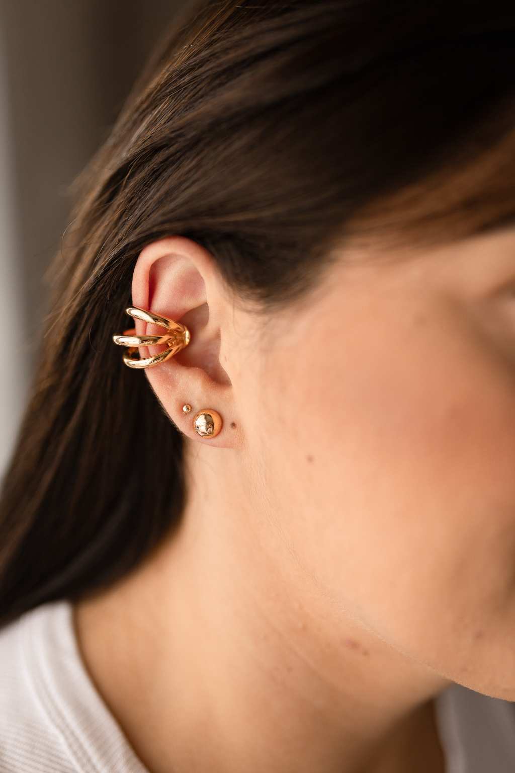 Brinco bolinha com acabamento liso e banho de ouro 18k.