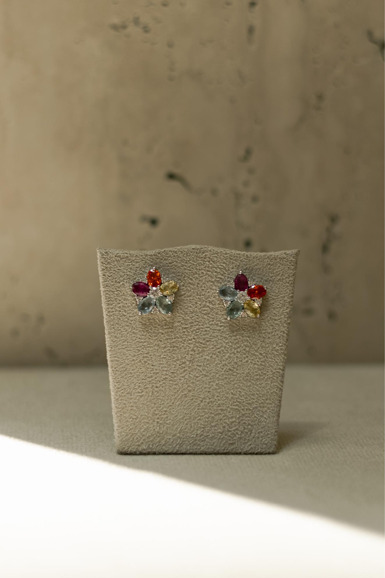 Brinco no banho de ródio branco com zircônias coloridas. Este brinco é perfeito para realçar sua beleza em ocasiões especiais ou para adicionar um toque de sofisticação ao seu look.