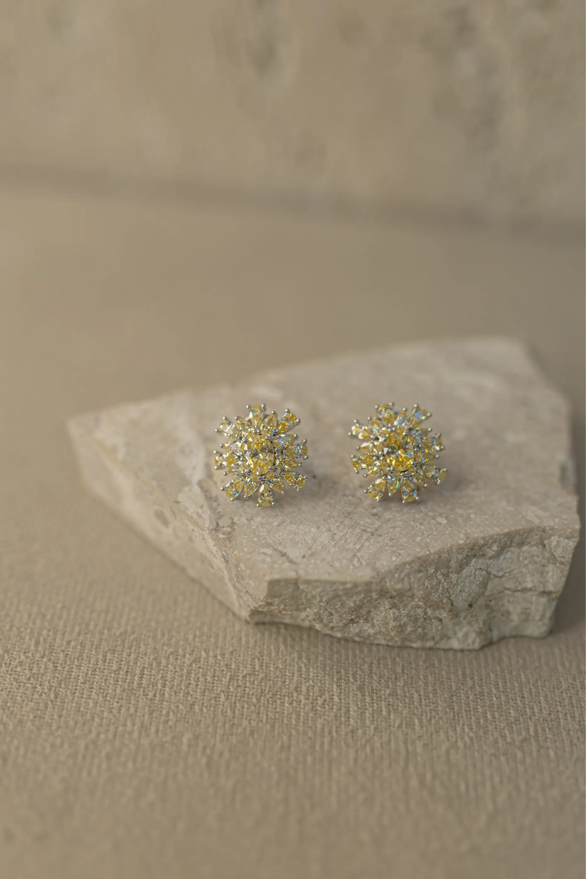 Brinco botão Flor com zircônias Yellow Fancy ródio branco.