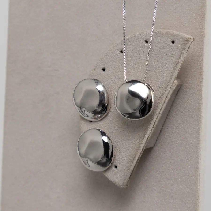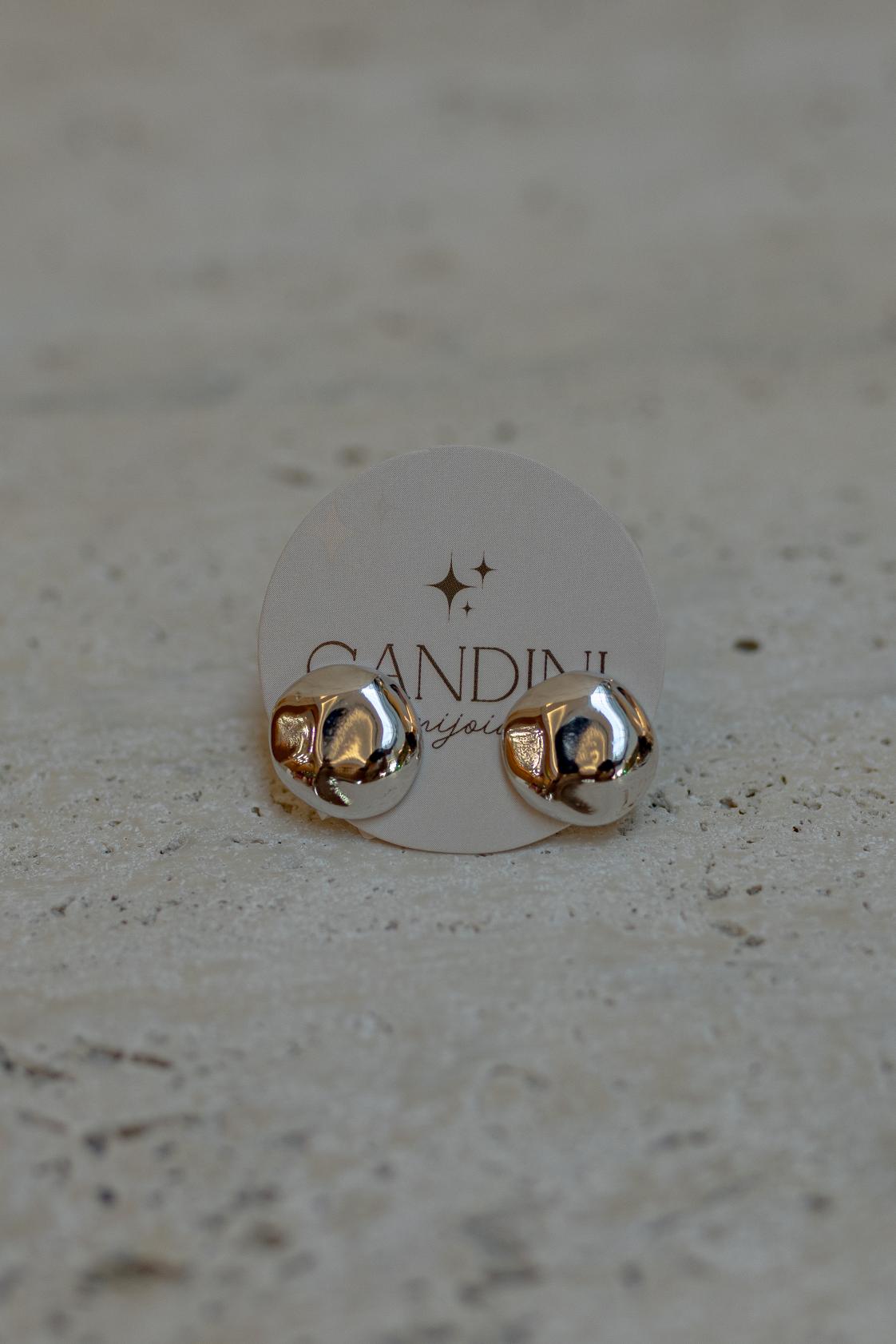 Brinco em formato de botão orgânico no banho de ródio branco.