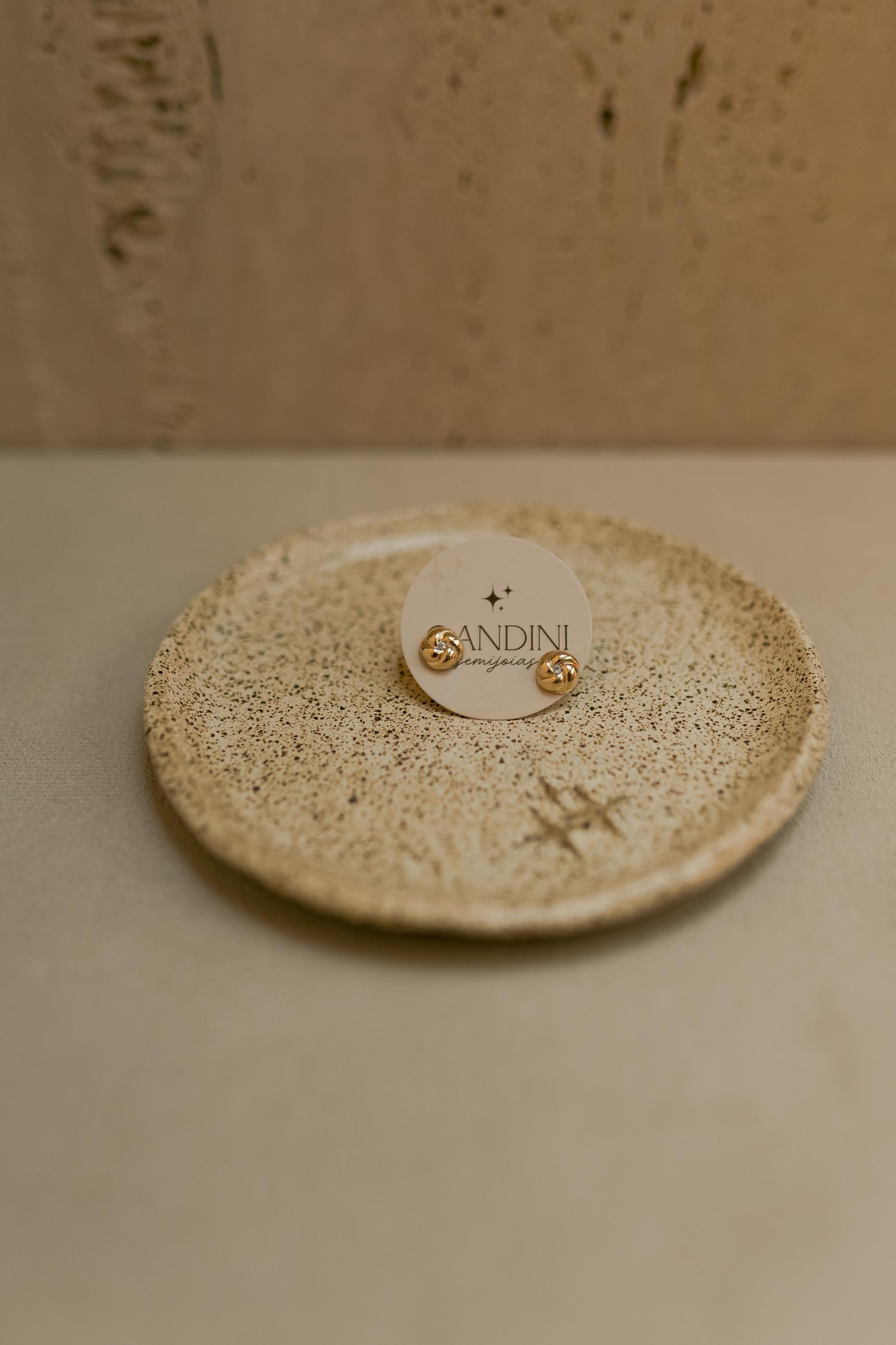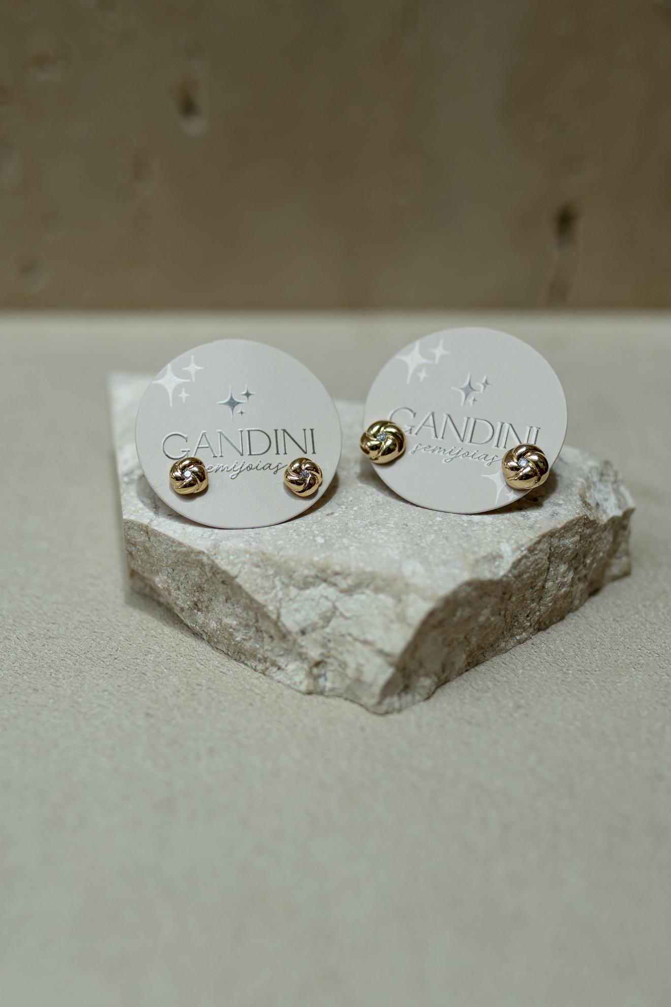 Brinco Botão torcido com zirconia G no banho de ouro 18k