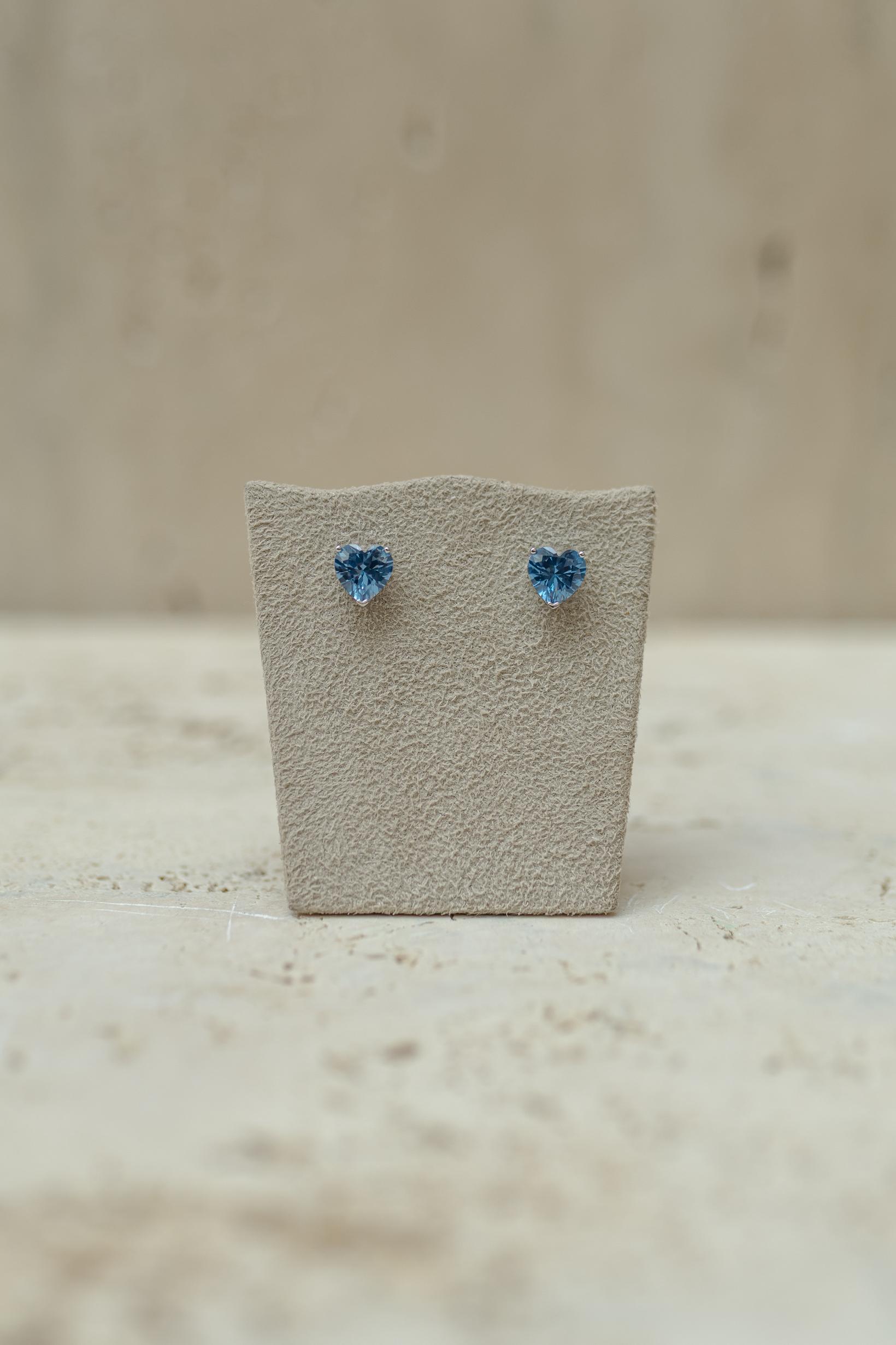 • Brinco Coração Aquamarine Ródio Branco