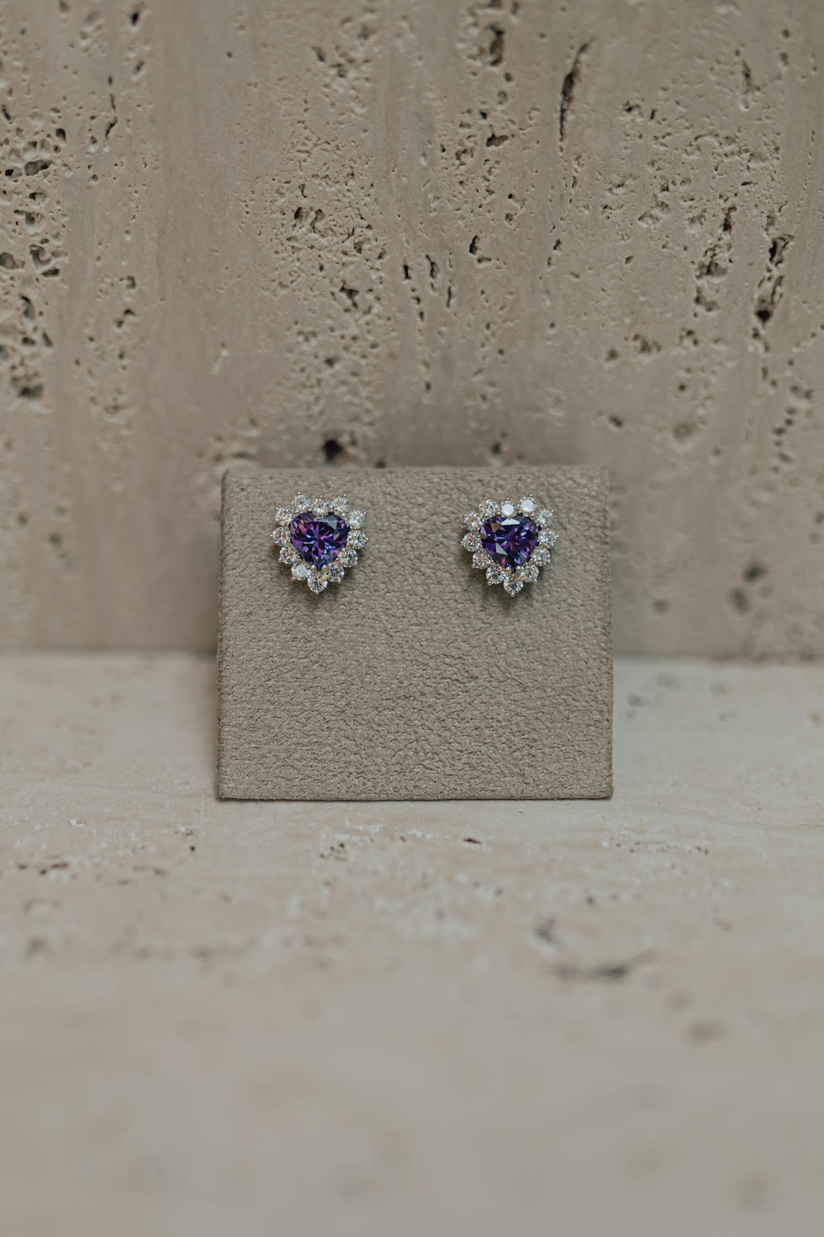 Brinco Coração Bordas Zircônias Ametista Prata 925 Ródio Branco