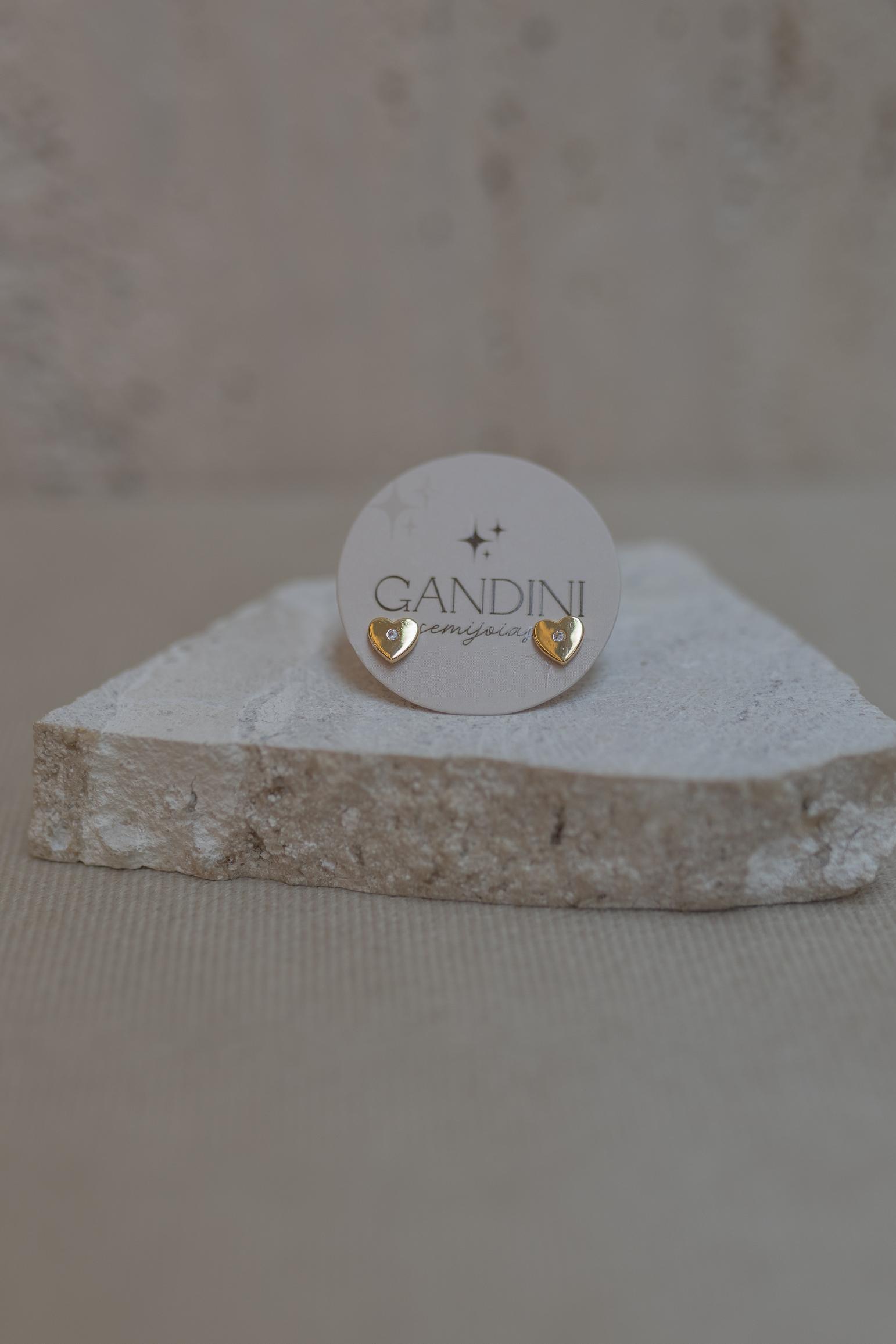 Brinco coração com ponto de luz no banho de ouro 18k.