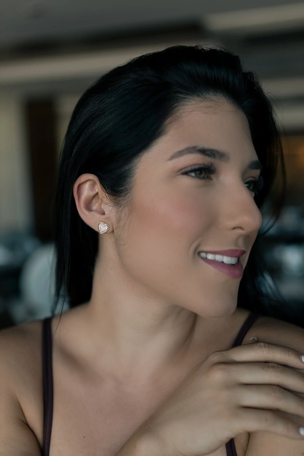 O brinco com formato de coração cravejado no banho de ouro 18k é lindo, delicado e super romântico. Possui uma moldura texturizada super delicada que dá um toque sofisticado à peça.