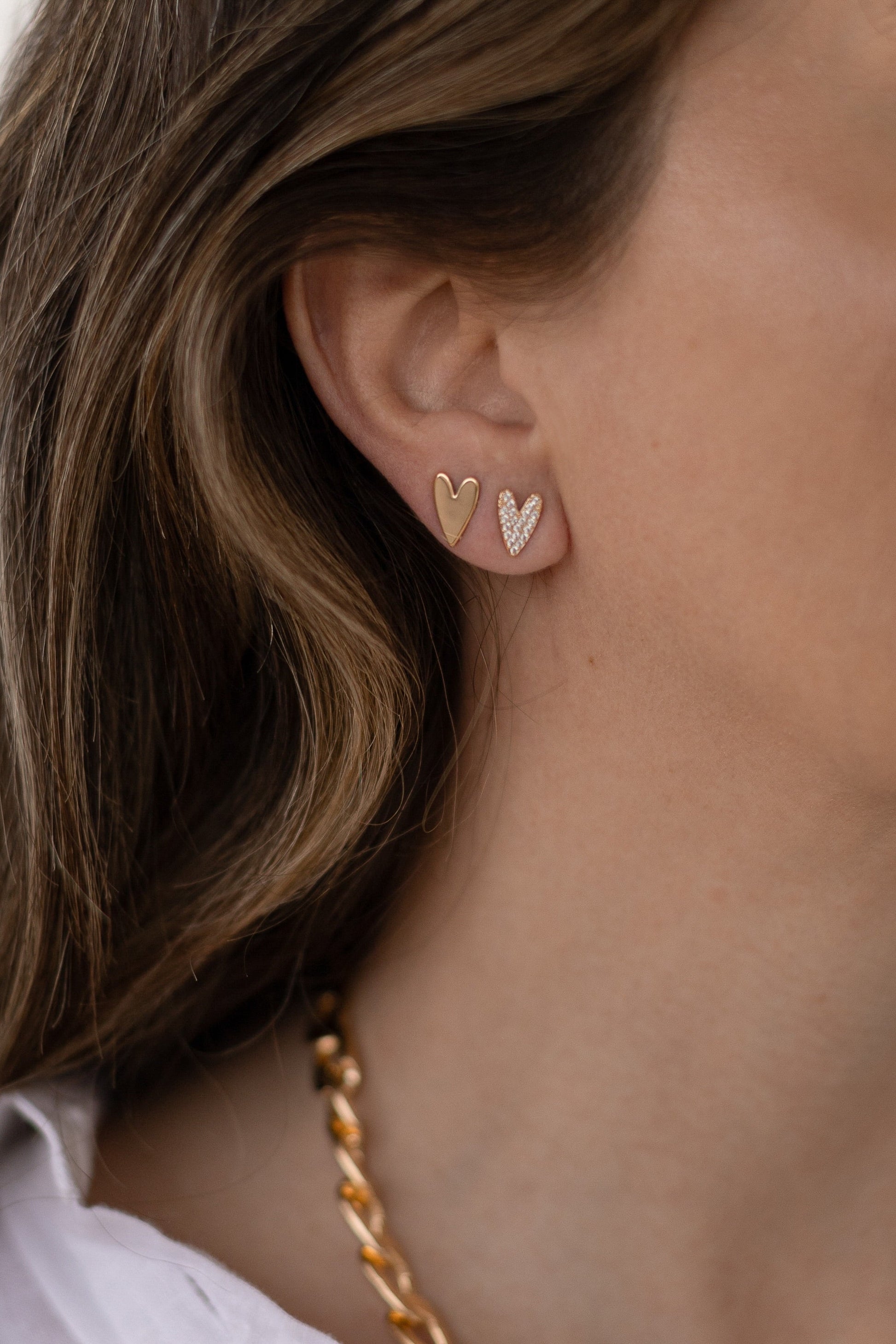 O brinco com formato de coração cravejado no banho de ouro 18k é lindo, delicado e super romântico, perfeito para compor aquele mix de brincos menores e piercings fakes. Um acessório super versátil que pode ser usado tanto de dia quanto a noite. Use sua imaginação e complete seu visual com essa lindeza!