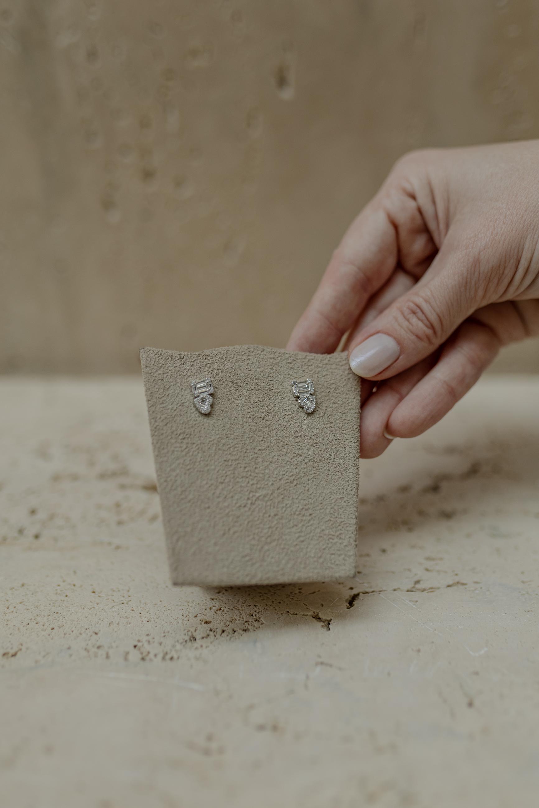 Brinco Coração e Retângulo Baguete Prata 925 Ródio Branco