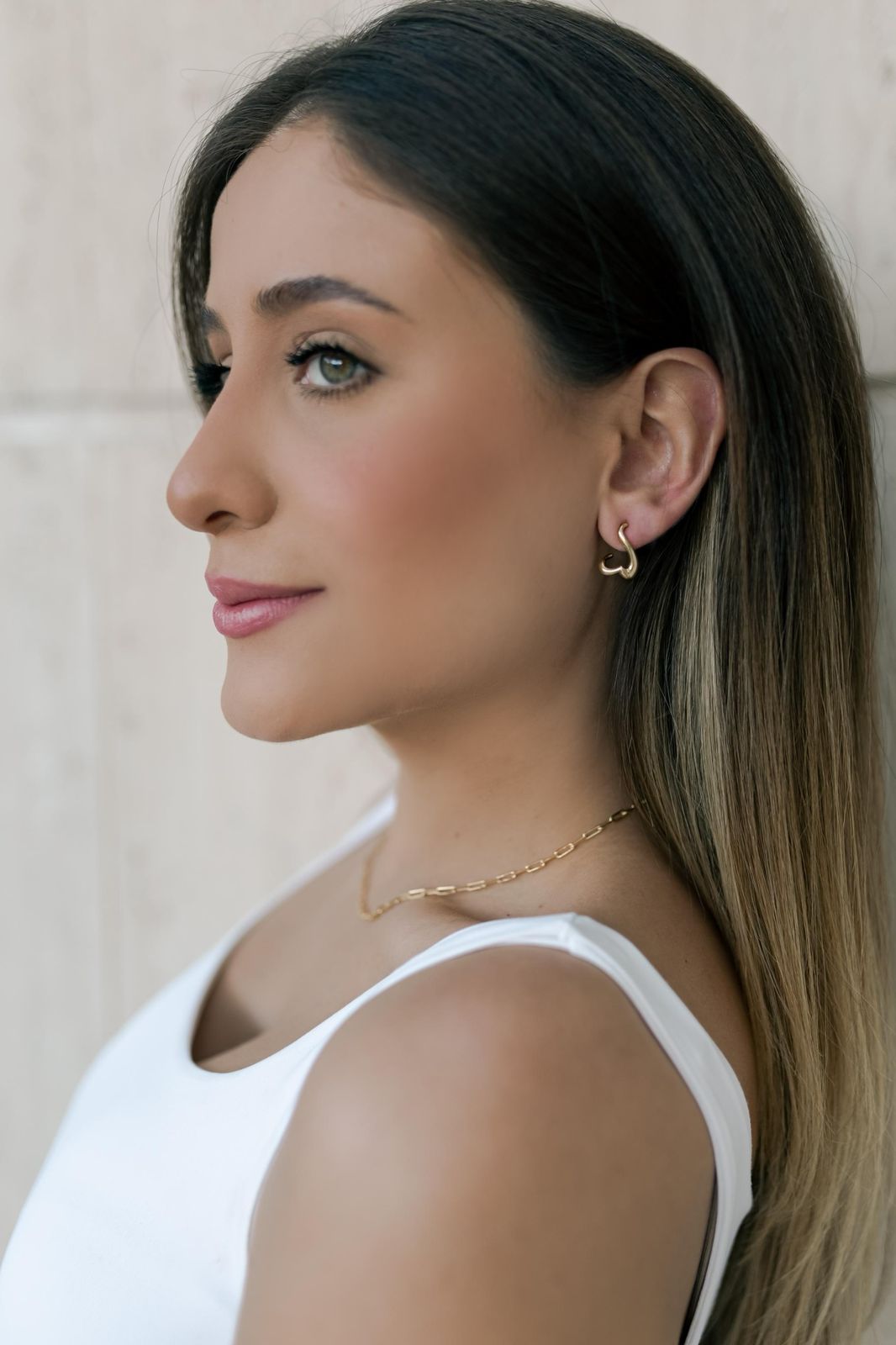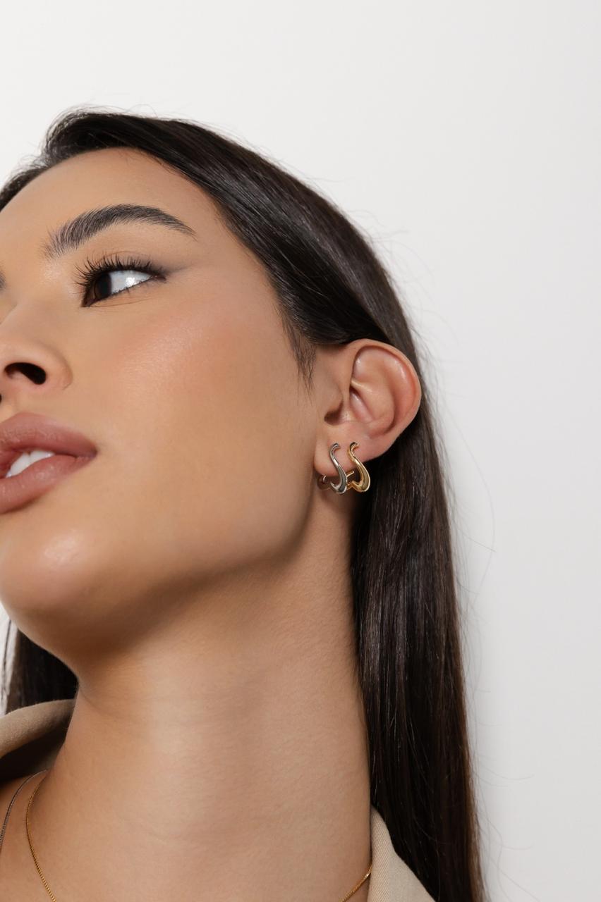 Brinco em formato de Coração Orgânico Pequeno Aberto Liso no banho de ouro 18k.