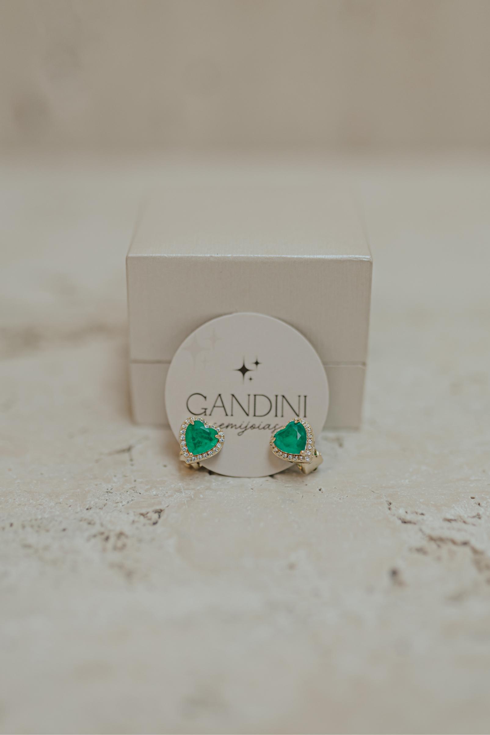 Brinco de pressão no formato de coração esmeralda no banho de ouro 18k.