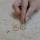 Brinco estilo ear hook com design de linhas básicas com argola no banho de Dourado 18k.