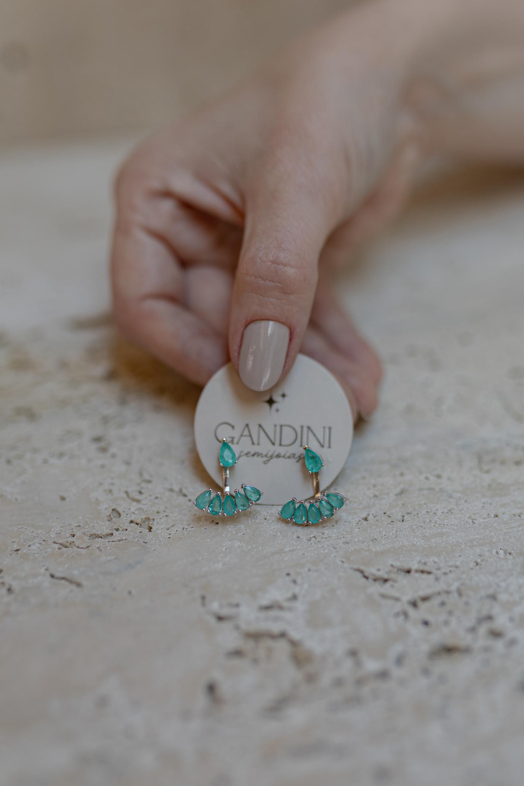 Brinco Ear Jacket Esmeralda Colombiana 6 Gotinhas Prata 925 Ródio Branco